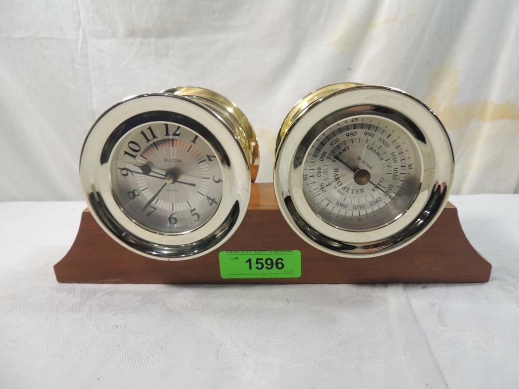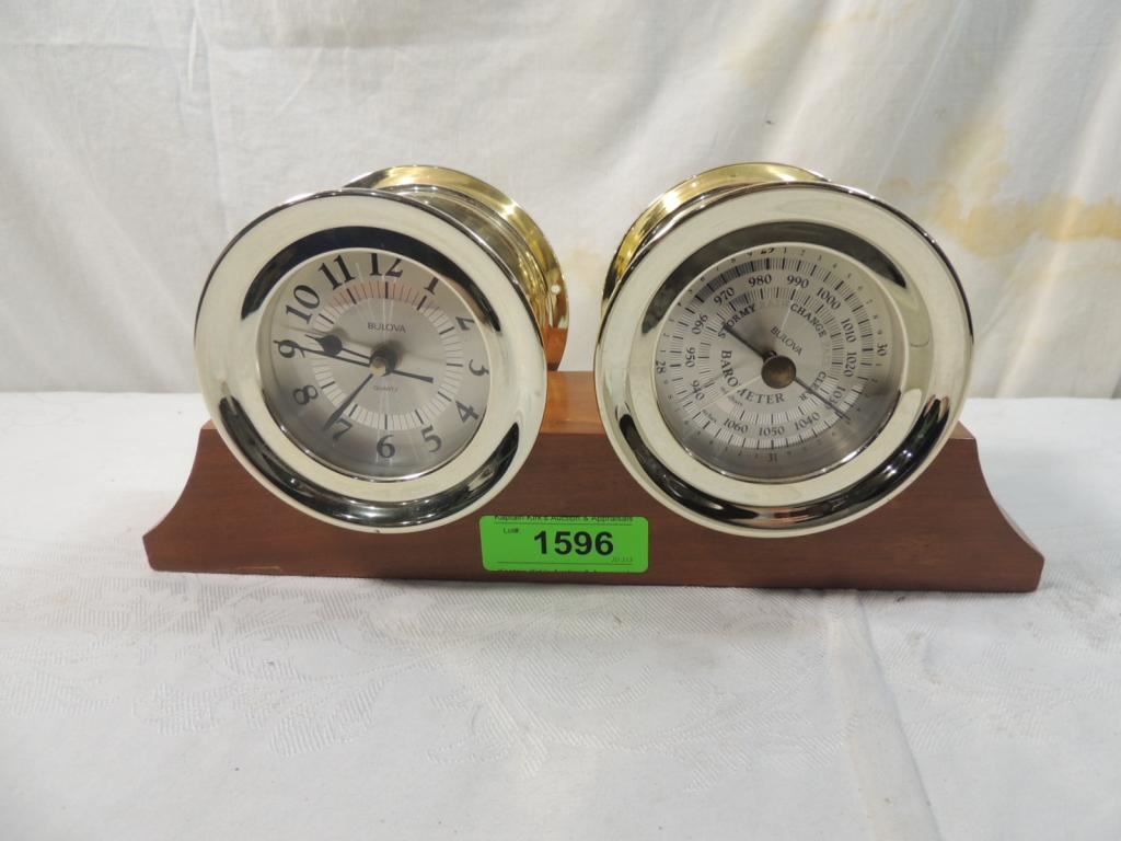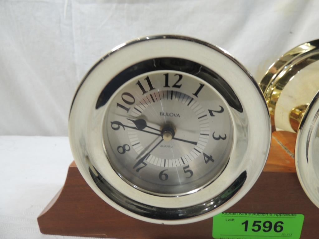 NAUTICAL CLOCK & BAROMETER DESK SET, DISPLAY WEATHER STATION, AS SHOWN SEE PHOTO FOR MORE DETAILS.