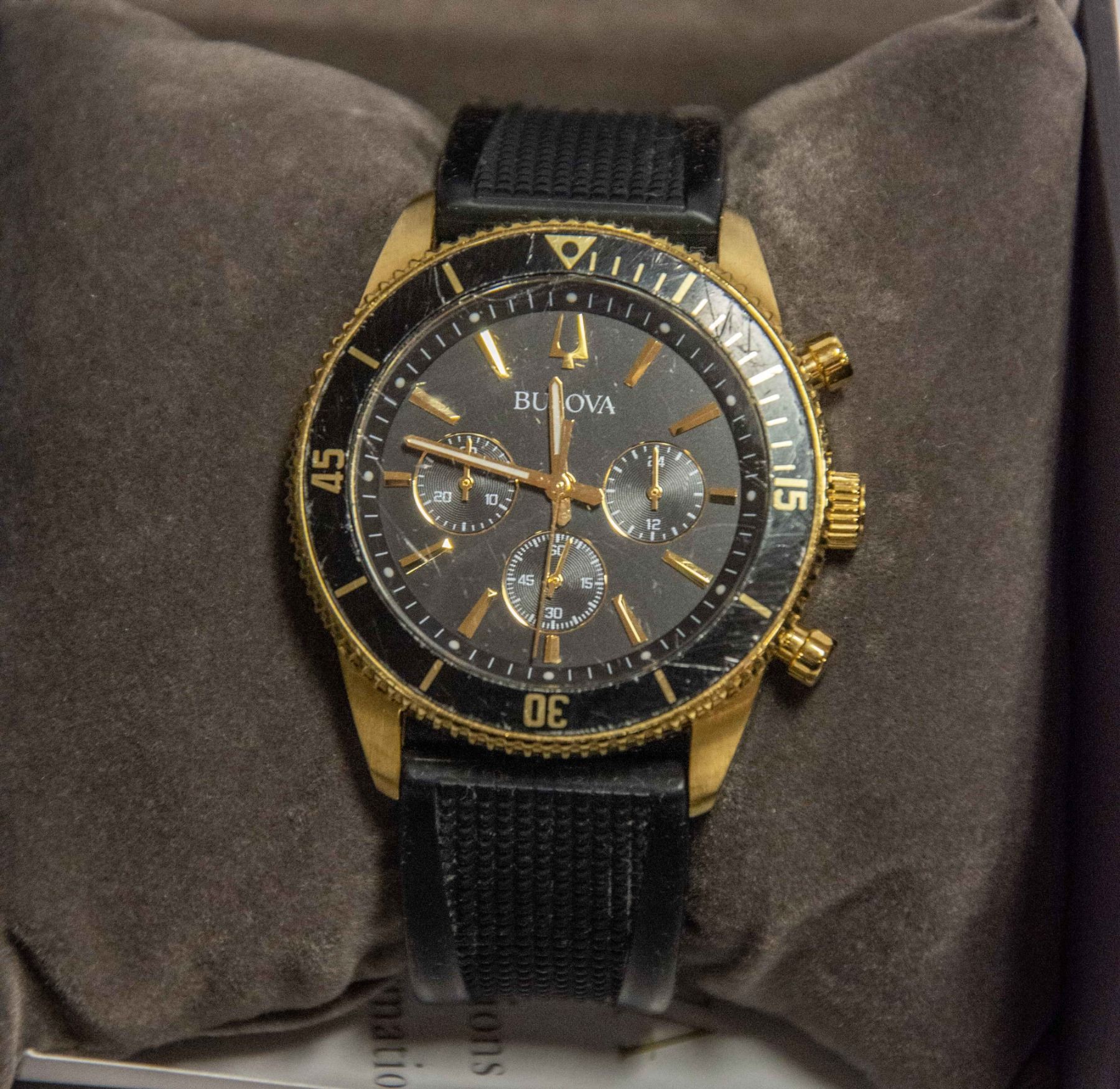 AUTHENTIC. COMES WITH INSTRUCTIONS. 45 MM CASE WITH CROWN. SILICON WATERPROOF BRACELET MINOR SCRATCHES.