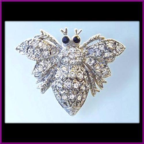 BUMBLE BEE PIN BROOCH in GENUINE WHITE SWAROVSKI CRYSTALS