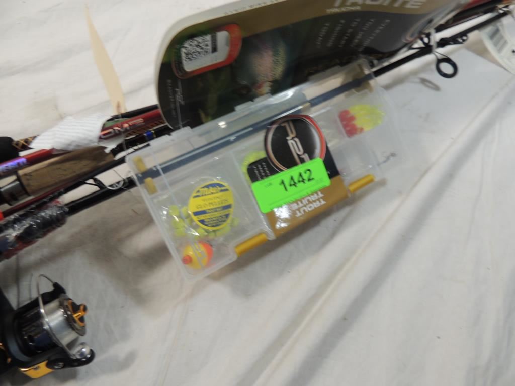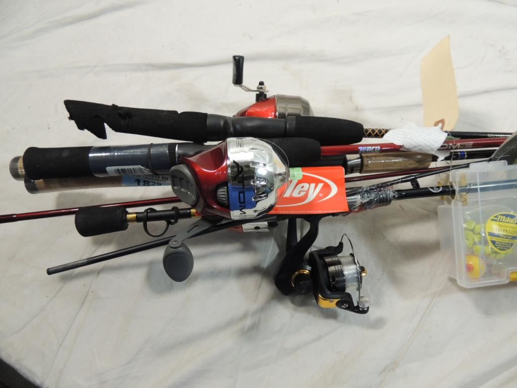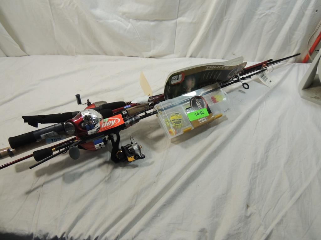 TACKLE BOX, FISHING REELS FISHING POLE, HOBBY ACCESSORIES, FISHING EQUIPMENT, ACCESSORIES, SPORTS EQUIPMENT, AS SHOWN SEE PHOTO FOR MORE DETAILS
