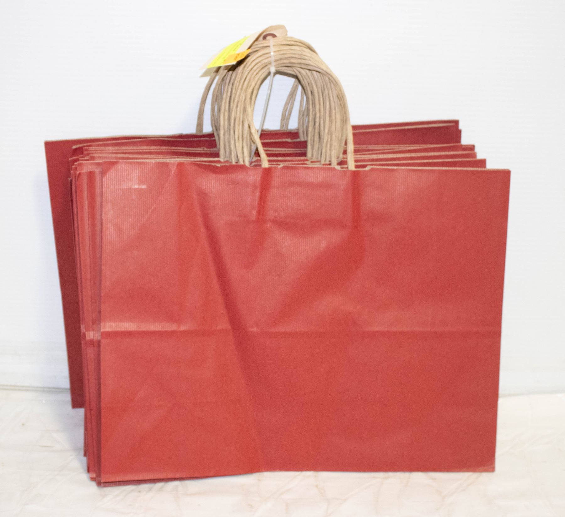 BUNDLE OF 25 NEW RED PAPER BAGS 15  X 12  X 5