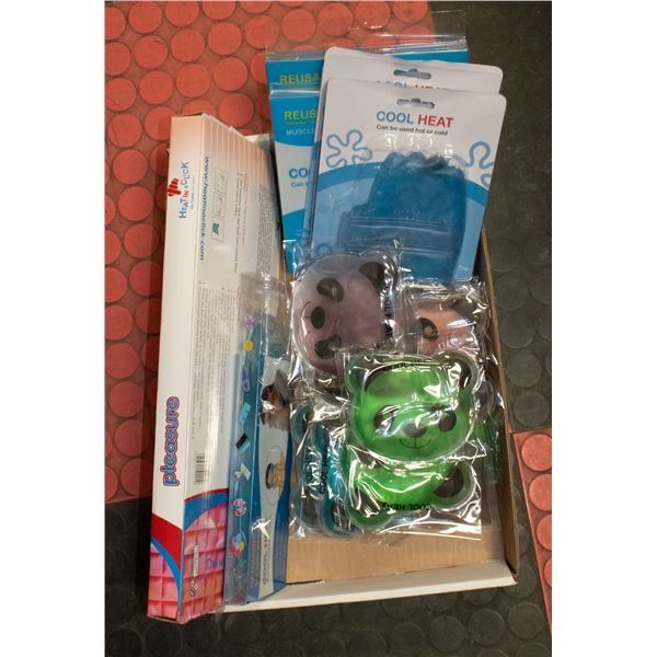 VARIOUS SIZES. INCLUDES BACK/SHOULDER, EYE MASK, 2 MUSCLE PADS, 2 HAND PAD WITH STRAP, 10 PANDA PADS, 10 SMALL PADS, ALL PADS ARE REUSABLE SAFE AND NATURAL.