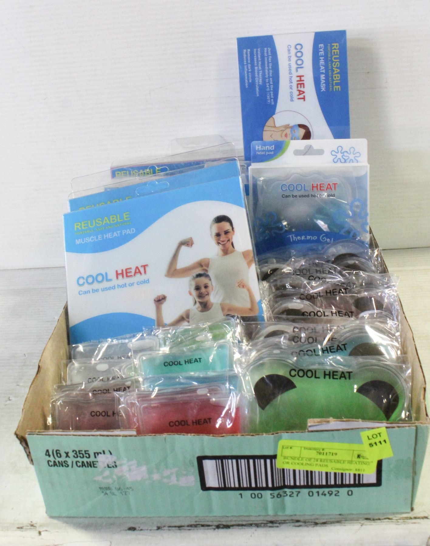 VARIOUS SIZES INCLUDES KNEE PAD, 2 HAND WITH STRAP PADS, EYE MASK, 2 MUSCLE PADS, HAND PAD, 10 PANDA PADS, BABY BOTTLE WARMER, 10 INDIVIDUAL PADS - ALL PADS ARE REUSABLE, SAFE AND NATURAL CAN BE USED HOT OR COLD