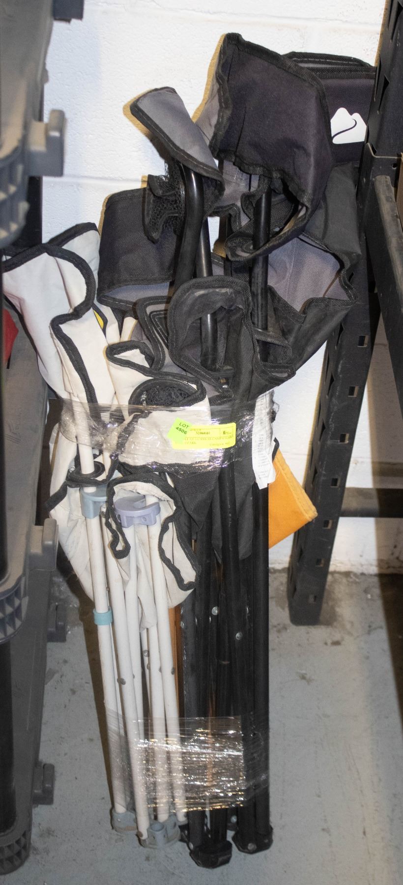 TRAIL ADULT FULL-SIZE BLACK AND GREY FOLD-UP CHAIR AND TWO CHILDREN'S CANVAS FOLD-UP CAMP CHAIRS