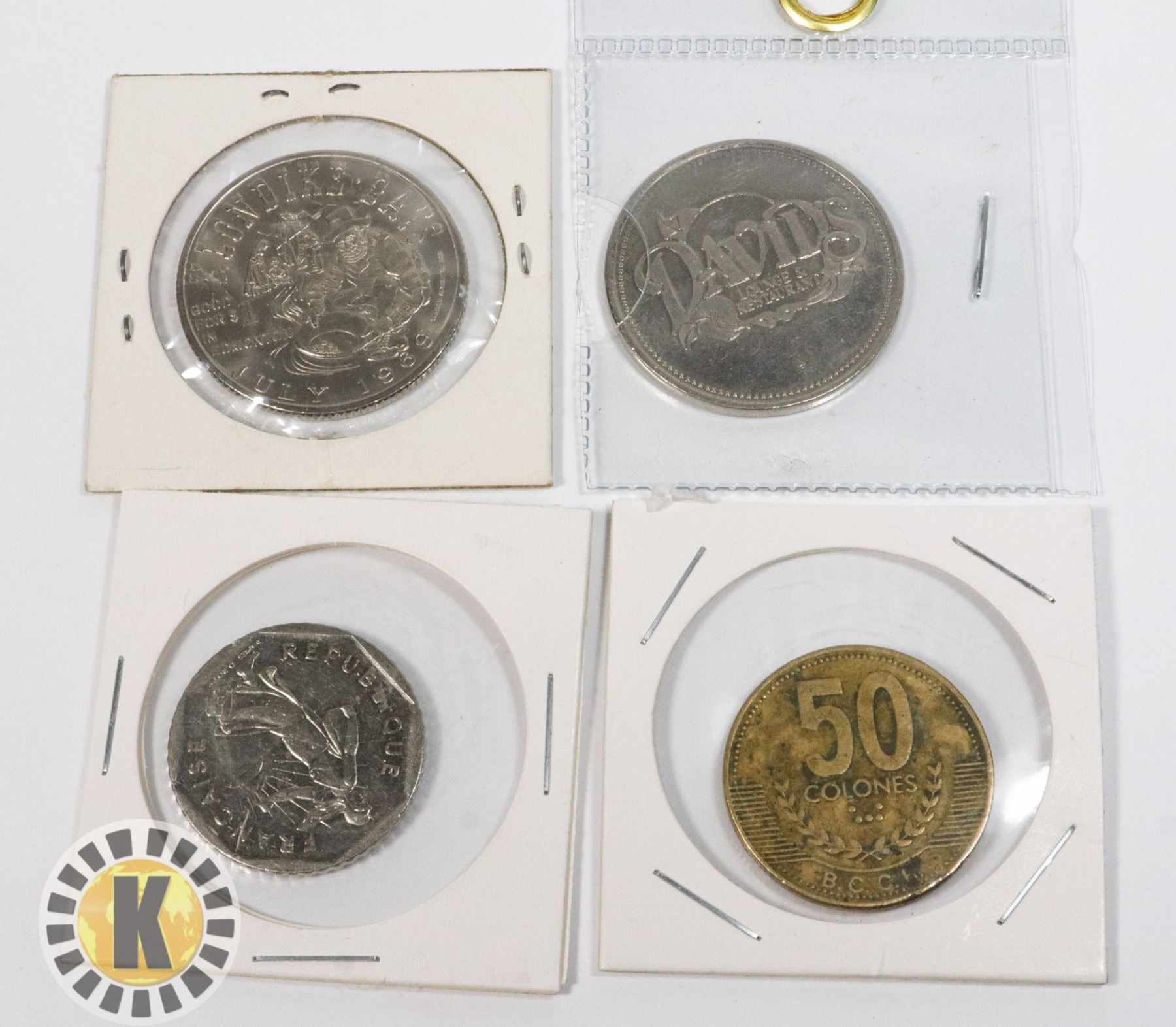 BUNDLE OF 4  ASSORTED TOKENS AND FOREIGN CURRENCY
