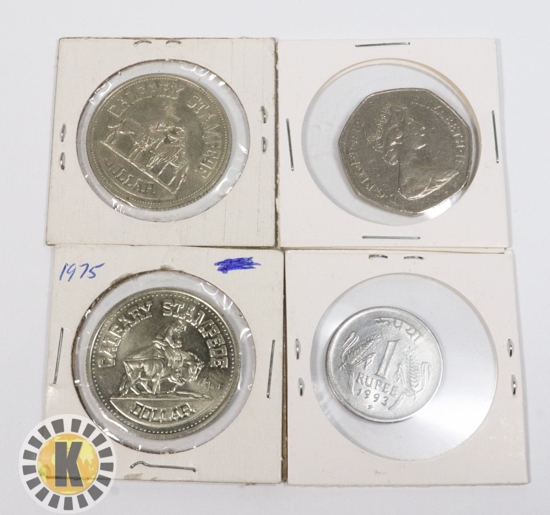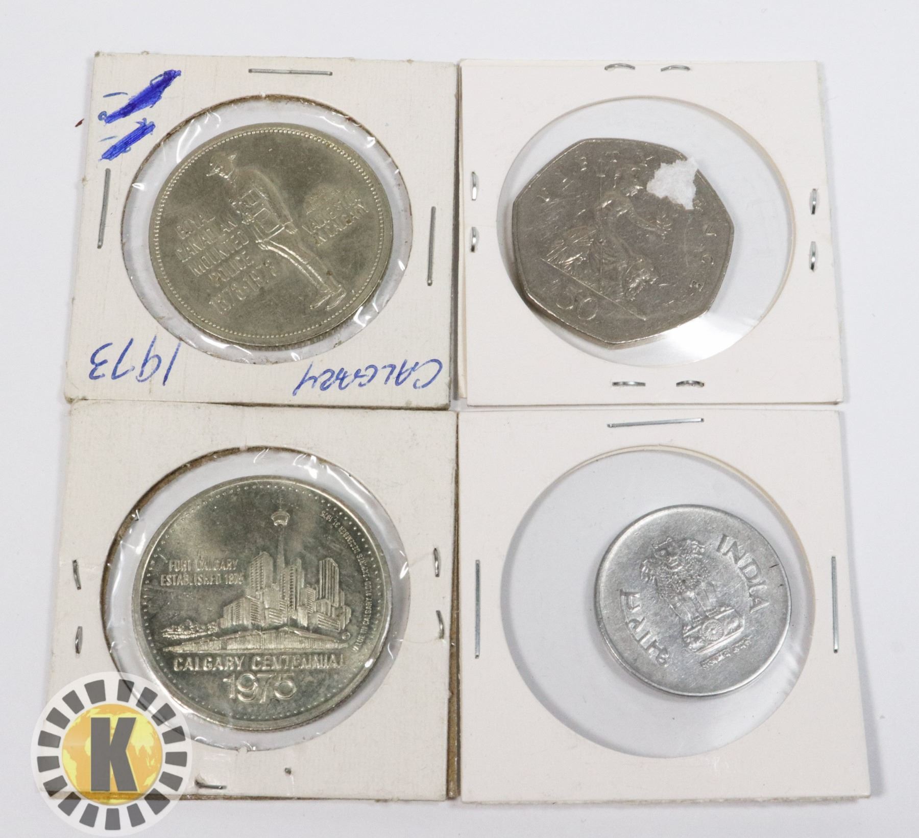BUNDLE OF 4  ASSORTED TOKENS AND FOREIGN CURRENCY