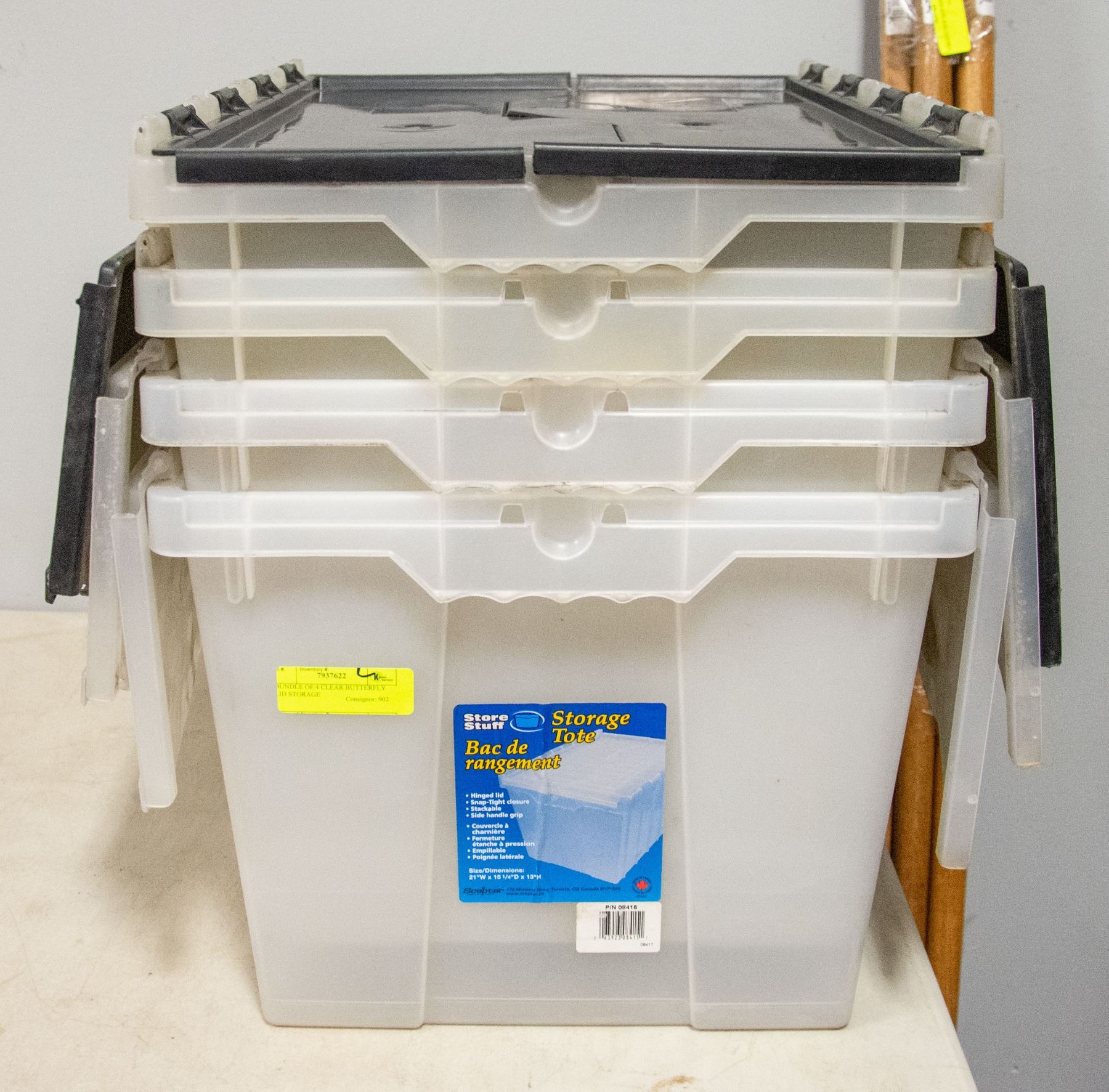 TOTES - 45 LITER - STACKABLE **ALL ITEMS MUST BE REMOVED BY 5PM SATURDAY, FEBRUARY 25TH 2023. ALL REMAINING ITEMS WILL BE SUBJECT TO A $6.00 PER DAY STORAGE CHARGE. ANY ITEMS REMAINING AFTER MONDAY, MARCH 13TH, 2023 WILL BE CONSIDERED FORFEITED. NO REFUNDS WILL BE ISSUED FOR FORFEITED ITEMS. TO SCHEDULE A PICK UP APPOINTMENT CLICK HERE