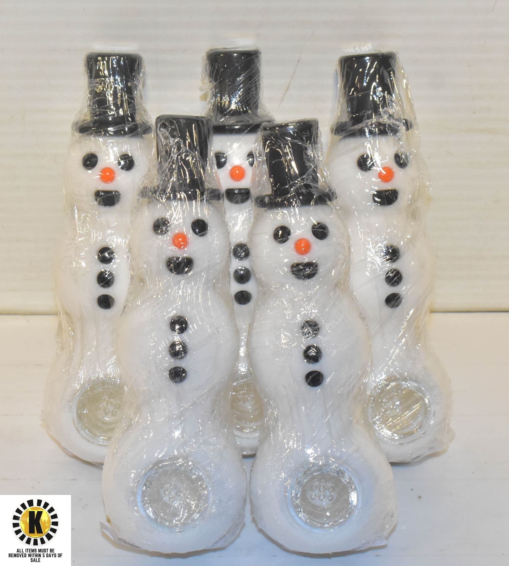BUNDLE OF 5 NEW SILICONE SNOWMAN PIPES WITH GLASS