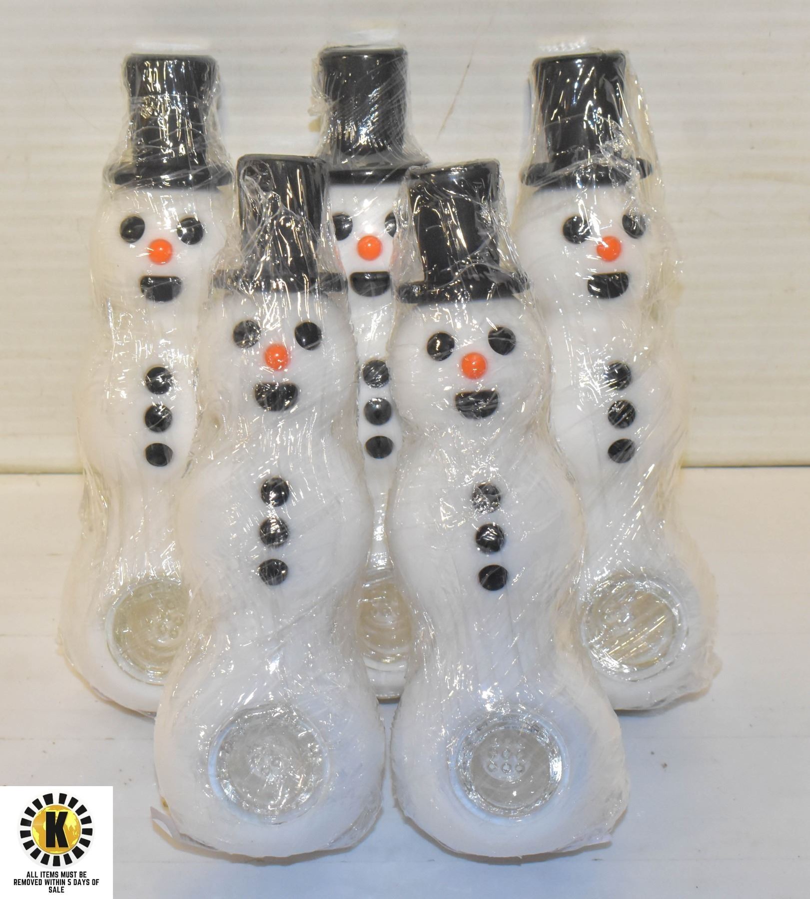 BUNDLE OF 5 NEW SILICONE SNOWMAN PIPES WITH GLASS