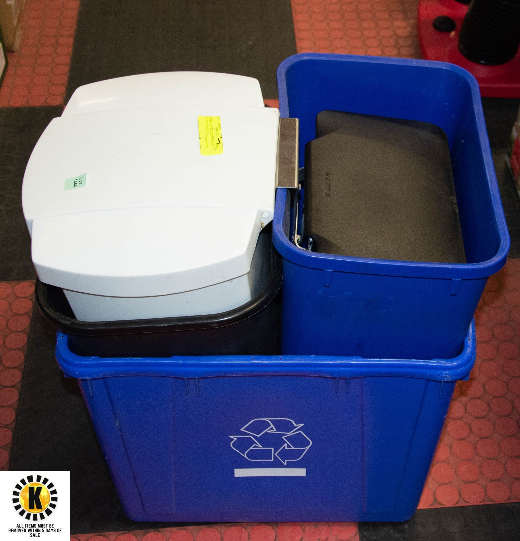 INCL. WHITE GARBAGE CAN WITH PEDAL OPERATED LID, LARGE AND MEDIUM SIZE BLUE RECYCLE BINS, BLACK OFFICE GARBAGE CAN AND CUPBOARD MOUNT BAG HOLDER WITH LID **ALL ITEMS MUST BE REMOVED BY 5PM SATURDAY, APRIL 22ND, 2023. ALL REMAINING ITEMS WILL BE SUBJECT TO A $6.00 PER DAY STORAGE CHARGE. ANY ITEMS REMAINING AFTER MONDAY, MAY 8TH, 2023 WILL BE CONSIDERED FORFEITED. NO REFUNDS WILL BE ISSUED FOR FORFEITED ITEMS.** TO SCHEDULE A PICK UP APPOINTMENT CLICK HERE