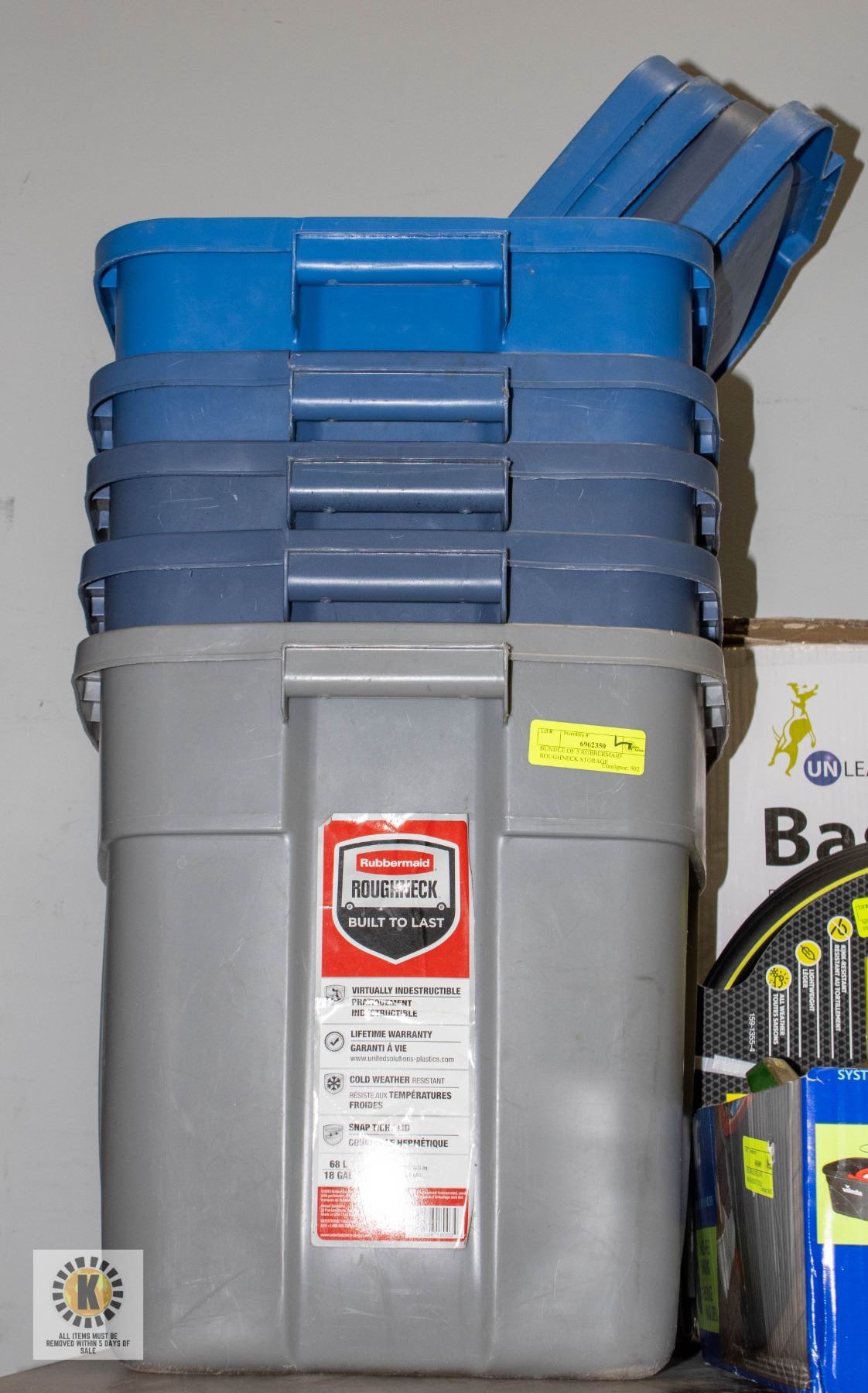 TOTES WITH 4 LIDS - 4 X 68 LITER TOTES AND 1 X 45 LITER TOTE **ALL ITEMS MUST BE REMOVED BY 5PM SATURDAY, APRIL 3RD 2025. ALL REMAINING ITEMS WILL BE SUBJECT TO A $6.00 PER DAY STORAGE CHARGE. ANY ITEMS REMAINING AFTER MONDAY, MAY 19TH 2025 WILL BE CONSIDERED FORFEITED. NO REFUNDS WILL BE ISSUED FOR FORFEITED ITEMS. TO SCHEDULE A PICK UP APPOINTMENT CLICK HERE