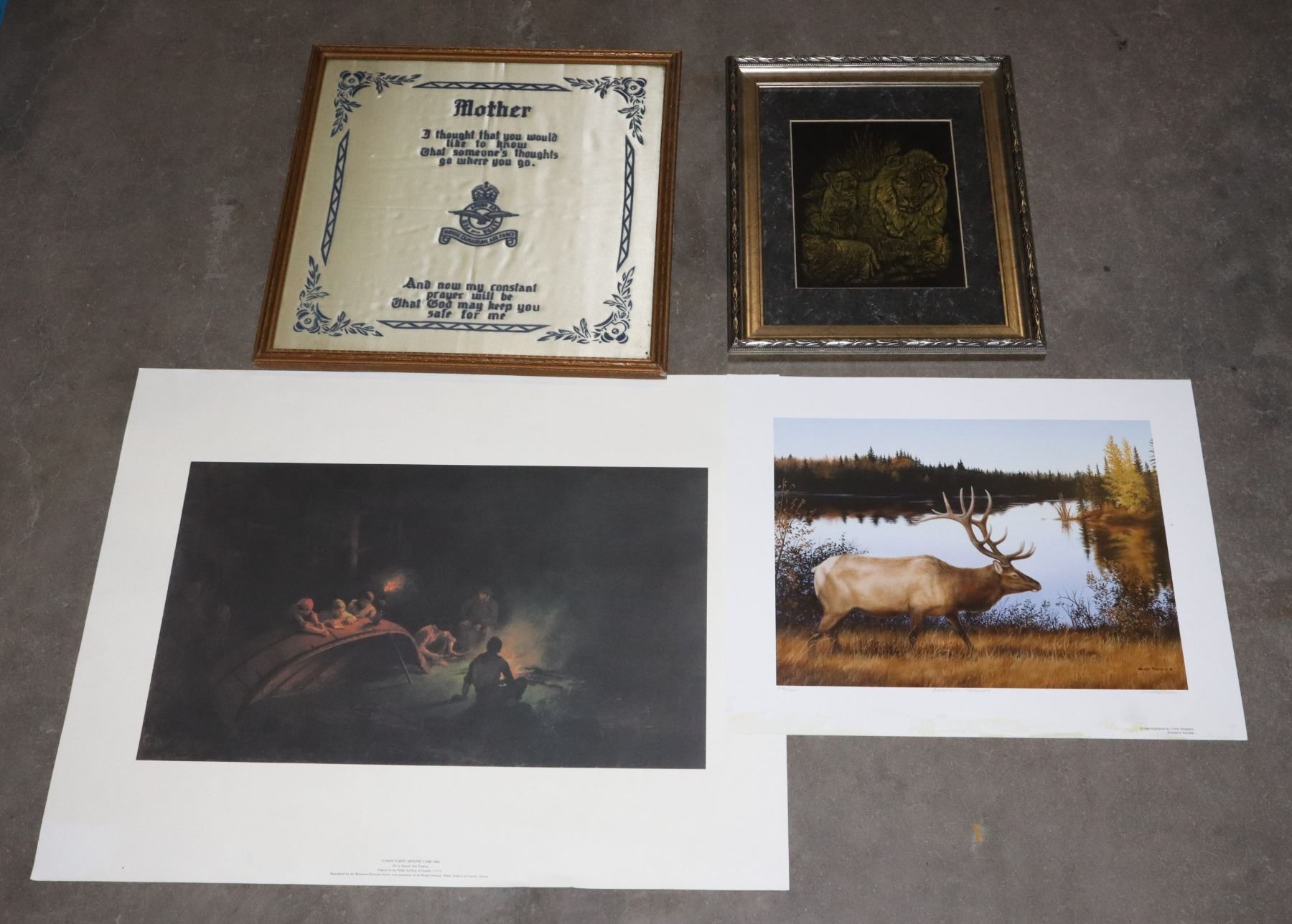 BUNDLE OF ASSORTED ARTWORK, SOME FRAMED, ELK IS