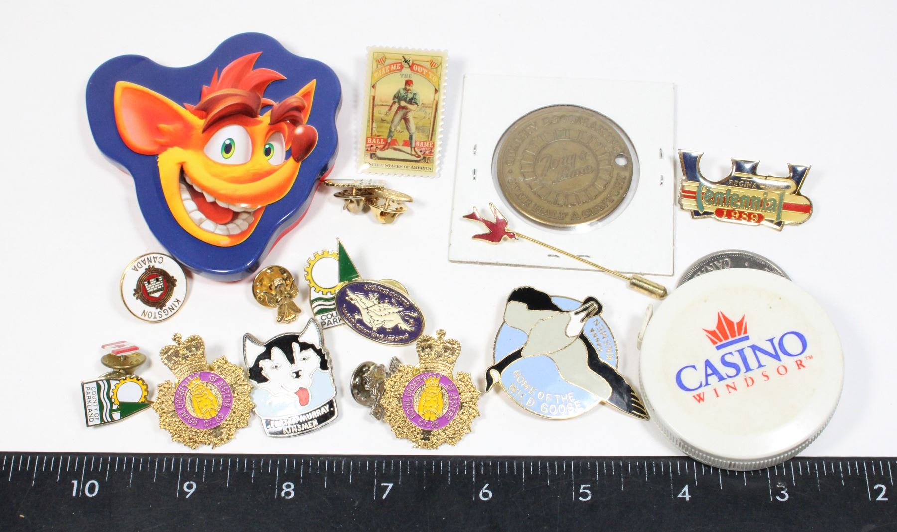 CRASH TEAM RUMBLE MINT TIN, VINTAGE LAPEL PIN, AND MORE