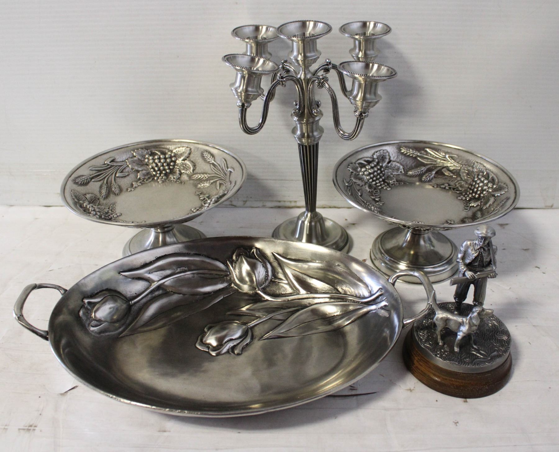 BUNDLE OF ASSORTED PEWTER DECOR + TRAY