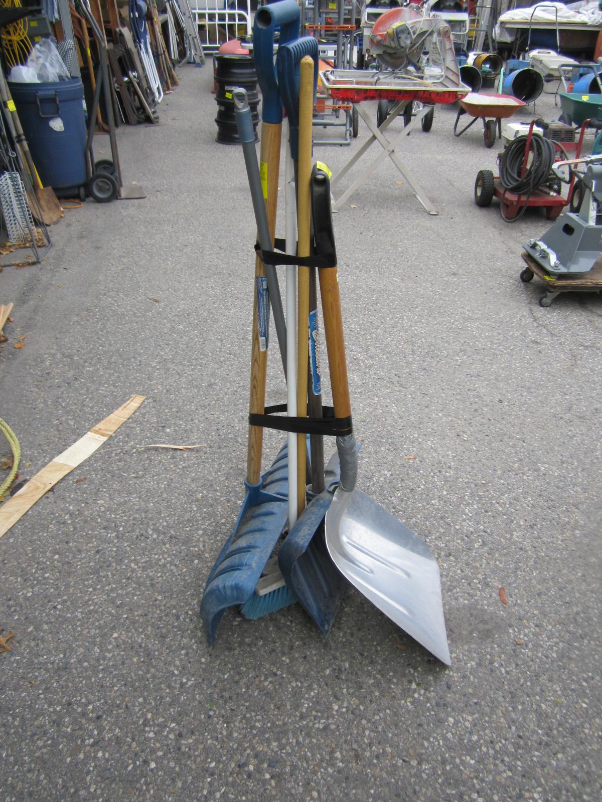 BUNDLE OF ASST. SHOVES, BROOM, ETC.