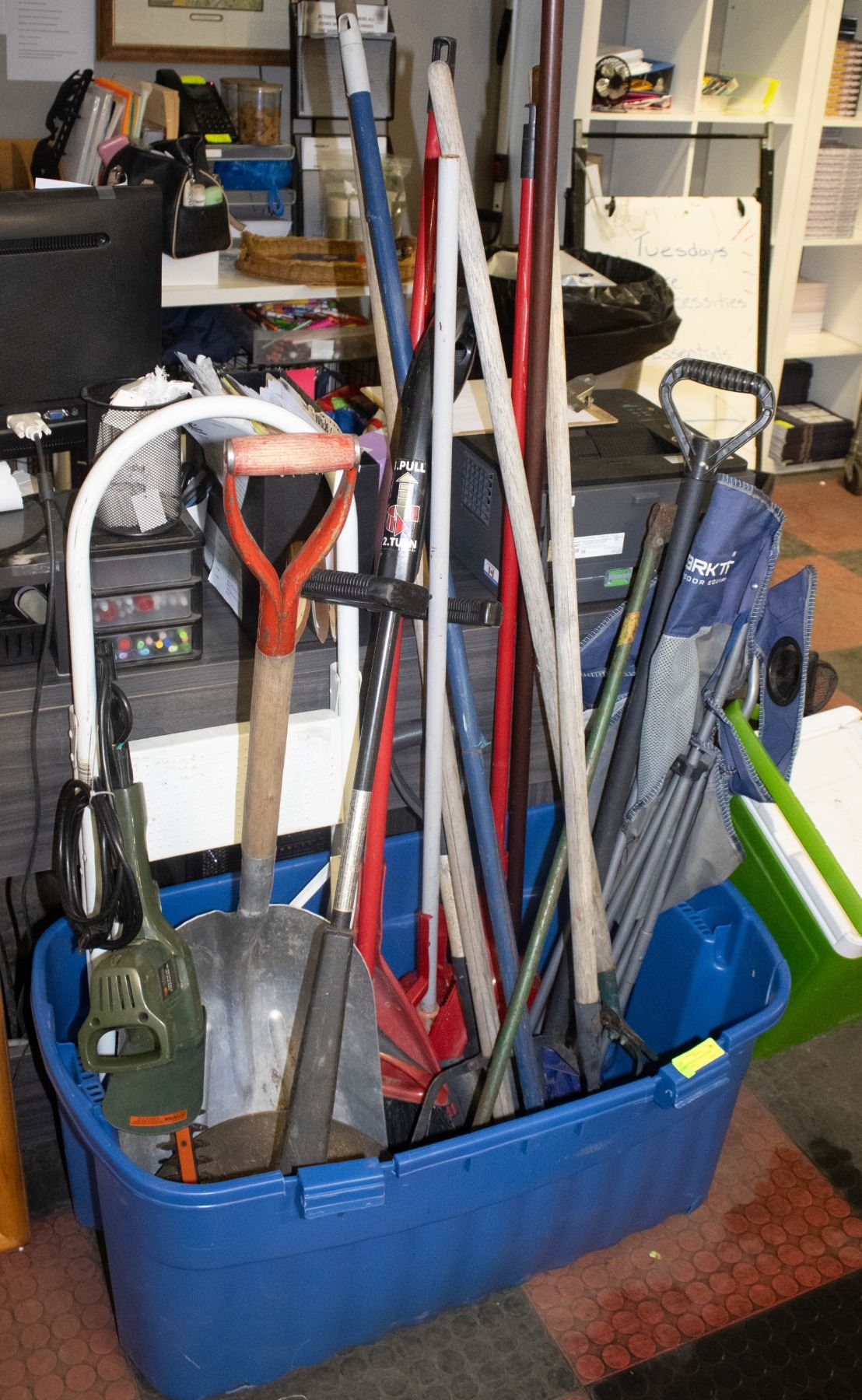 YARD TOOLS, WOODEN CURTAIN ROD, ETC ALL 17 TOGETHER IN LARGE TOTE **ALL ITEMS MUST BE REMOVED BY 5PM SATURDAY, JUNE 8TH 2024. ALL REMAINING ITEMS WILL BE SUBJECT TO A $6.00 PER DAY STORAGE CHARGE. ANY ITEMS REMAINING AFTER MONDAY, JUNE 24TH 2024 WILL BE CONSIDERED FORFEITED. NO REFUNDS WILL BE ISSUED FOR FORFEITED ITEMS. TO SCHEDULE A PICK UP APPOINTMENT CLICK HERE