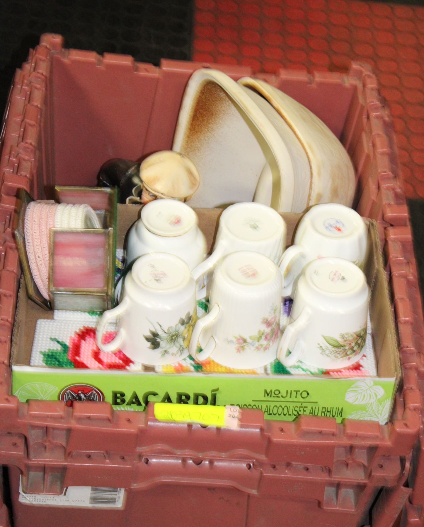 VINTAGE CERAMIC CROCK, GOLF STATUE AND TEACUPS + COASTERS **ALL ITEMS MUST BE REMOVED BY 5PM MONDAY, OCTOBER 24, 2022. ALL REMAINING ITEMS WILL BE SUBJECT TO A $6.00 PER DAY STORAGE CHARGE. ANY ITEMS REMAINING AFTER MONDAY, NOVEMBER 14, 2022 WILL BE CONSIDERED FORFEITED. NO REFUNDS WILL BE ISSUED FOR FORFEITED ITEMS. TO SCHEDULE A PICK UP APPOINTMENT CLICK HERE