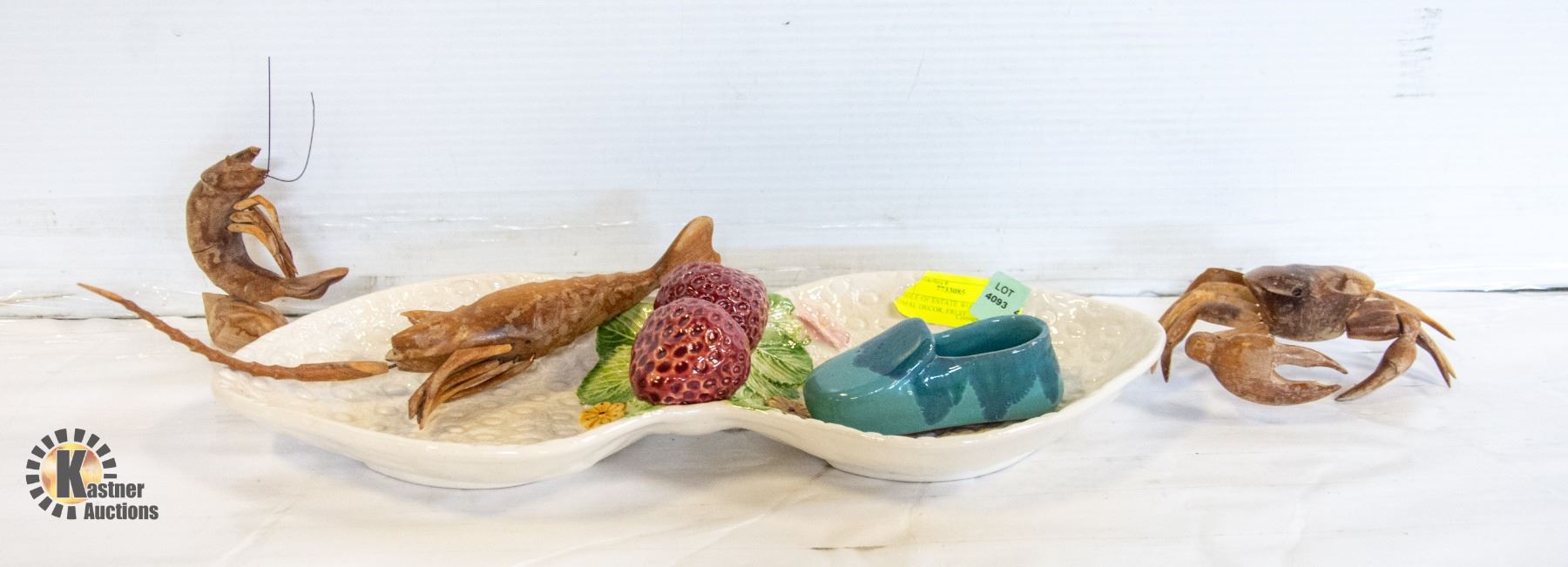 BUNDLE OF ESTATE WOODEN SEA ANIMAL DECOR, FRUIT