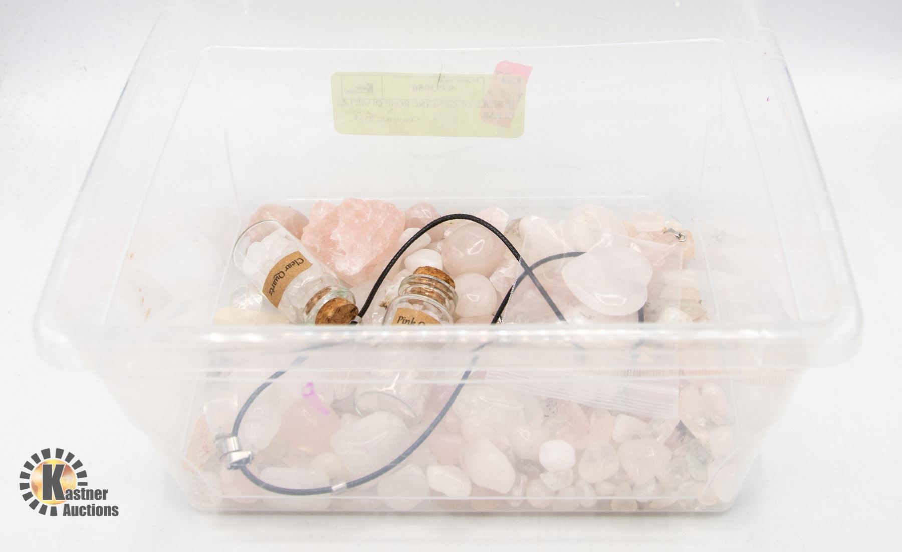 QUARTZ, KUNZITE GEMSTONES POLISHED AND ROUGH WITH NEW POLISHED PENDANT NECKLACES & MINI GLASS JARS OF GEMSTONES **ALL ITEMS MUST BE REMOVED BY 5PM SATURDAY, MAY 13TH 2023. ALL REMAINING ITEMS WILL BE SUBJECT TO A $6.00 PER DAY STORAGE CHARGE. ANY ITEMS REMAINING AFTER MONDAY, MAY 29TH, 2023 WILL BE CONSIDERED FORFEITED. NO REFUNDS WILL BE ISSUED FOR FORFEITED ITEMS. TO SCHEDULE A PICK UP APPOINTMENT CLICK HERE