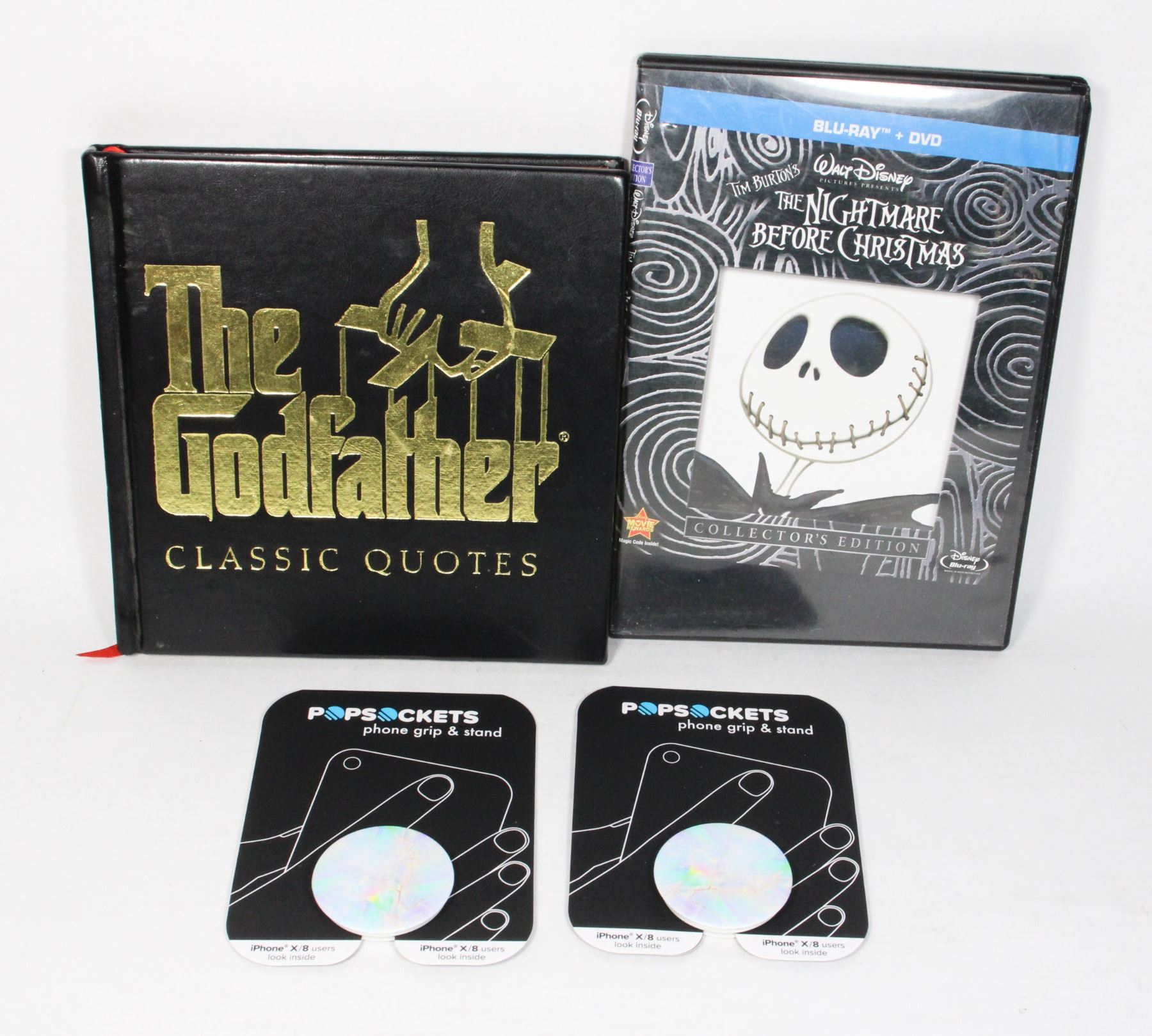 CHRISTMAS BLURAY, THE GODFATHER CLASSIC QUOTES BOOK, AND NEW POP SOCKET