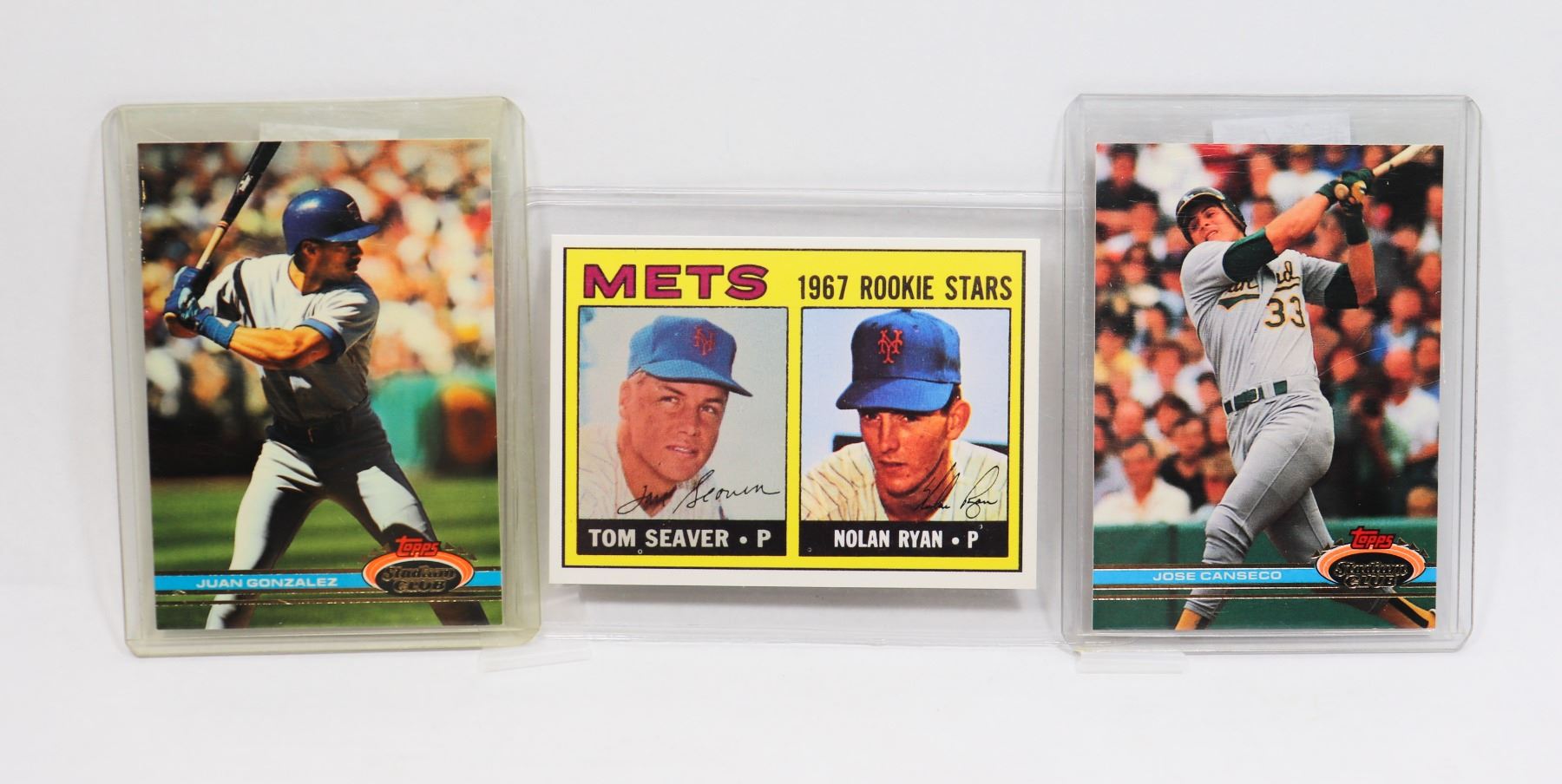 STADIUM CLUB 1991 BASEBALL CARDS AND 1990 PROMOTIONAL CARD REPRINT 1967 METS 1967 ROOKIE STARS TOM SEAVER NOLAN RYAN BASEBALL CARD