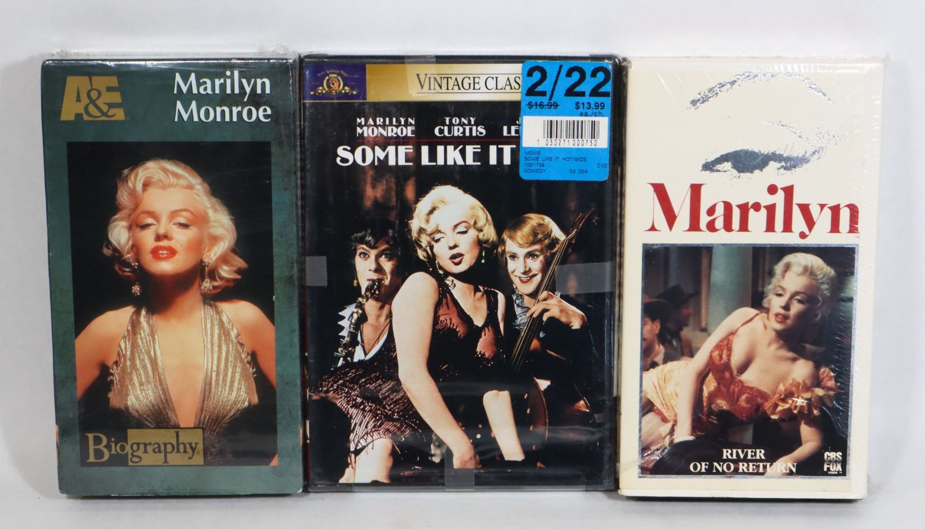 MARILY MONROE A & E BIOGRAPHY VHS, RIVER OF NO RETURN VHS, AND SOME LIKE IT HOT NEW SEALED DVD