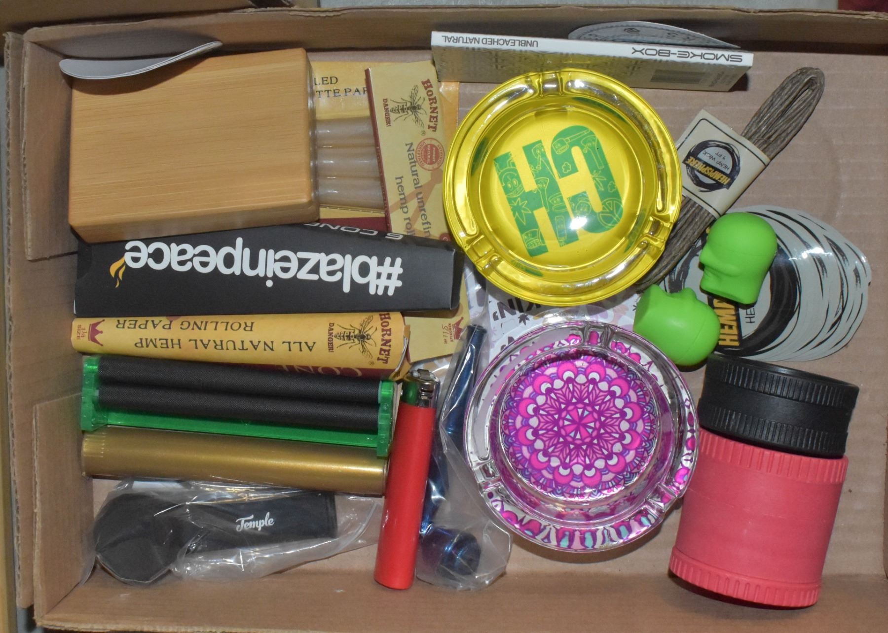 GRINDERS, STICKERS, ASH TRAYS, 2 PIPES, CONES, PAPERS, LIGHTER + ROLLER - ALL NEW **ALL ITEMS MUST BE REMOVED BY 5PM SATURDAY, DECEMBER 3RD, 2022. ALL REMAINING ITEMS WILL BE SUBJECT TO A $6.00 PER DAY STORAGE CHARGE. ANY ITEMS REMAINING AFTER MONDAY, DECEMBER 18TH, 2022 WILL BE CONSIDERED FORFEITED. NO REFUNDS WILL BE ISSUED FOR FORFEITED ITEMS. TO SCHEDULE A PICK UP APPOINTMENT CLICK HERE