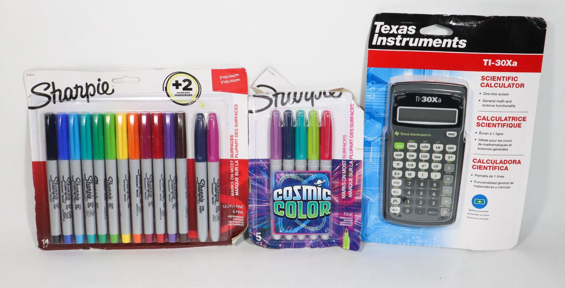 SHARPIE PENS, AND TEXAS INSTRUMENTS TI-30XA CALCULATOR