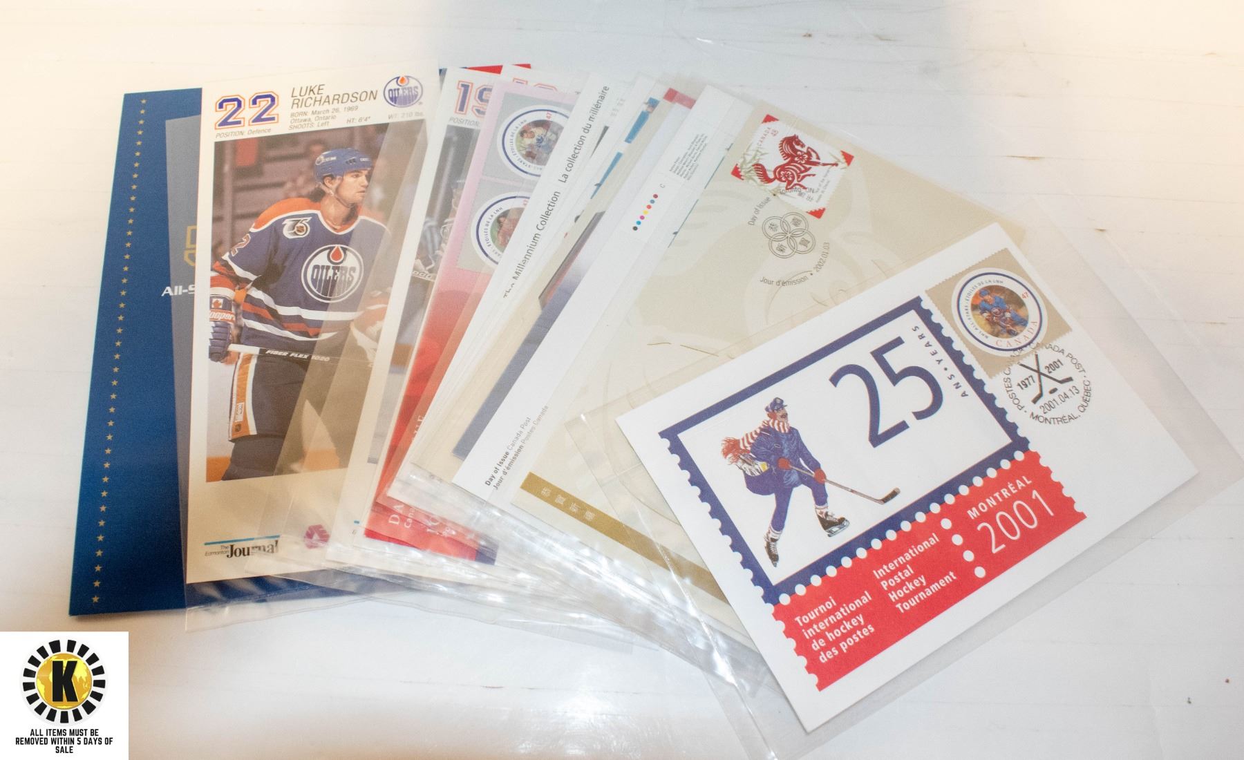 BUNDLE OF OILERS CARDS AND VARIOUS STAMPS