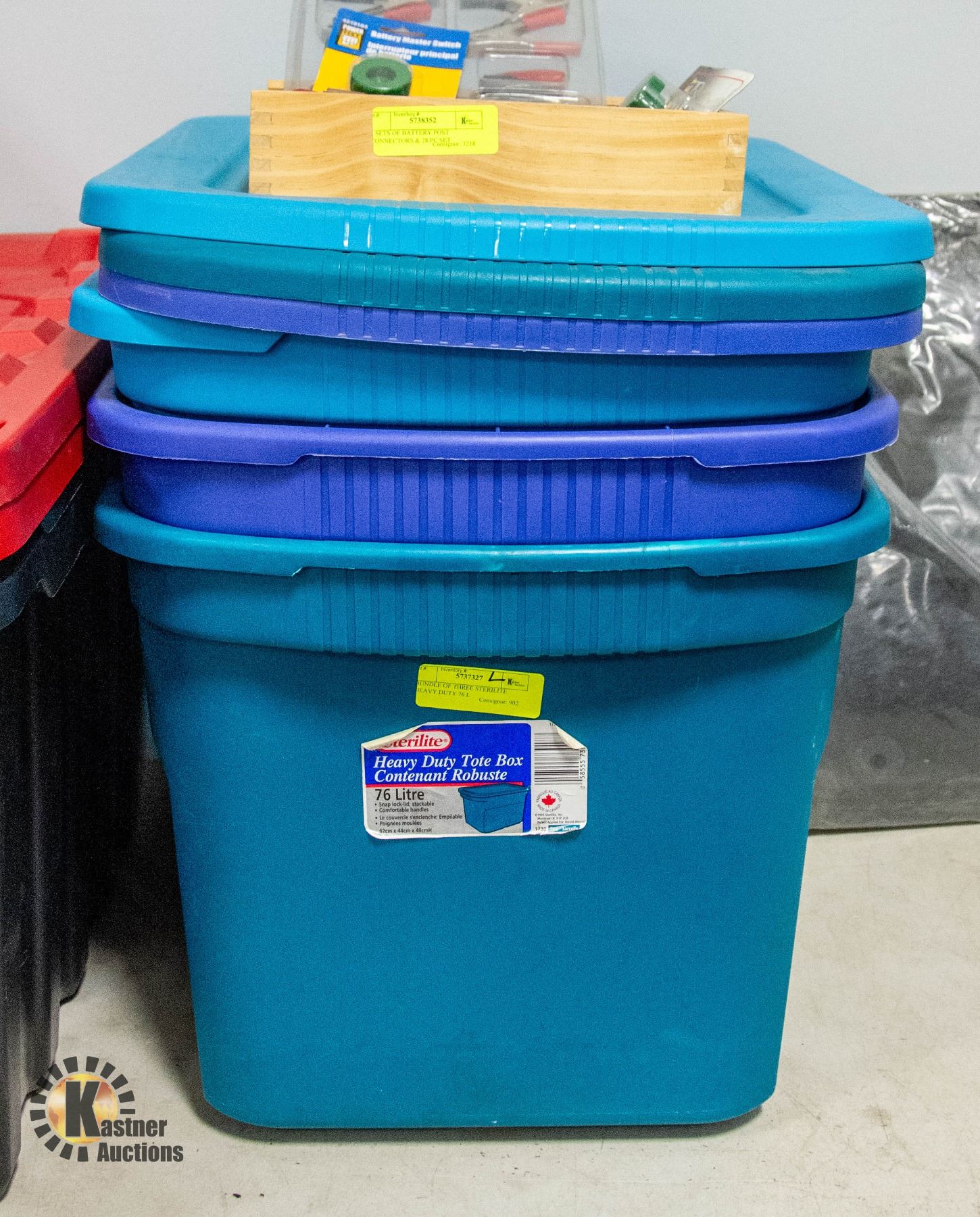 STORAGE TOTES WITH 3 LIDS - NESTING, STACKABLE **ALL ITEMS MUST BE REMOVED BY 5PM SATURDAY, DECEMBER 16TH 2023. ALL REMAINING ITEMS WILL BE SUBJECT TO A $6.00 PER DAY STORAGE CHARGE. ANY ITEMS REMAINING AFTER TUESDAY, JANUARY 2ND 2023 WILL BE CONSIDERED FORFEITED. NO REFUNDS WILL BE ISSUED FOR FORFEITED ITEMS. TO SCHEDULE A PICK UP APPOINTMENT CLICK HERE