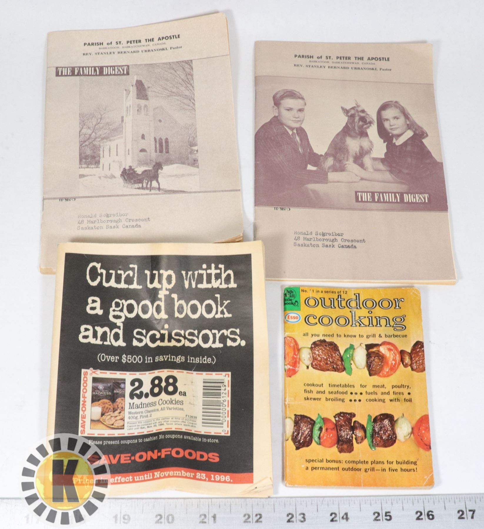 1972 FAMILY DIGEST BOOKS, 1964 ESSO OUTDOOR COOKING COOK BOOK, 1996 COUPON BOOK***ITEM(S) LOCATED IN LETHBRIDGE ALBERTA, TRANSPORT TO EDMONTON AVAILABLE FOR SMALL ITEMS ONLY (PLEASE READ AUCTION DESCRIPTION FOR MORE INFORMATION