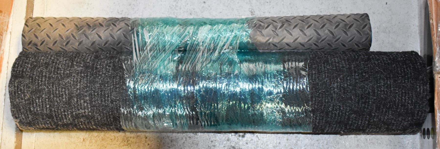 MATT (46"L X 32"W) AND A BLACK & GRAY RUBBER BACK ENTRY CARPET (47"X 36"")