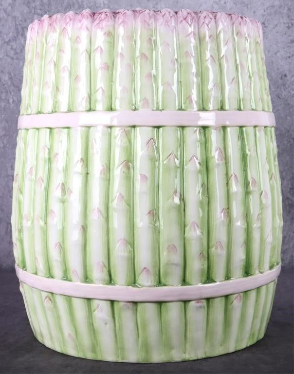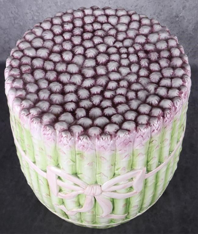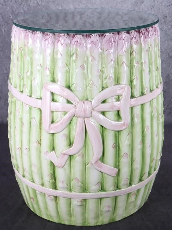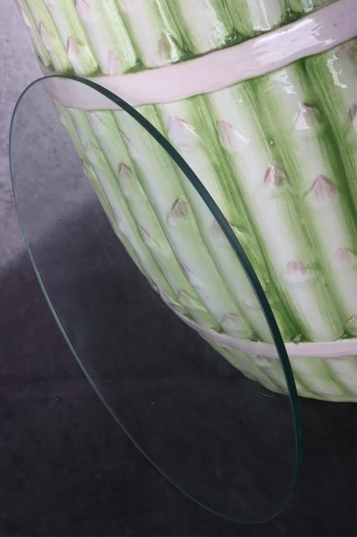 Bundled Pink & Green Asparagus Garden Stool made in Italy 4014. The stool includes a glass disk over the stool to become a side table.
