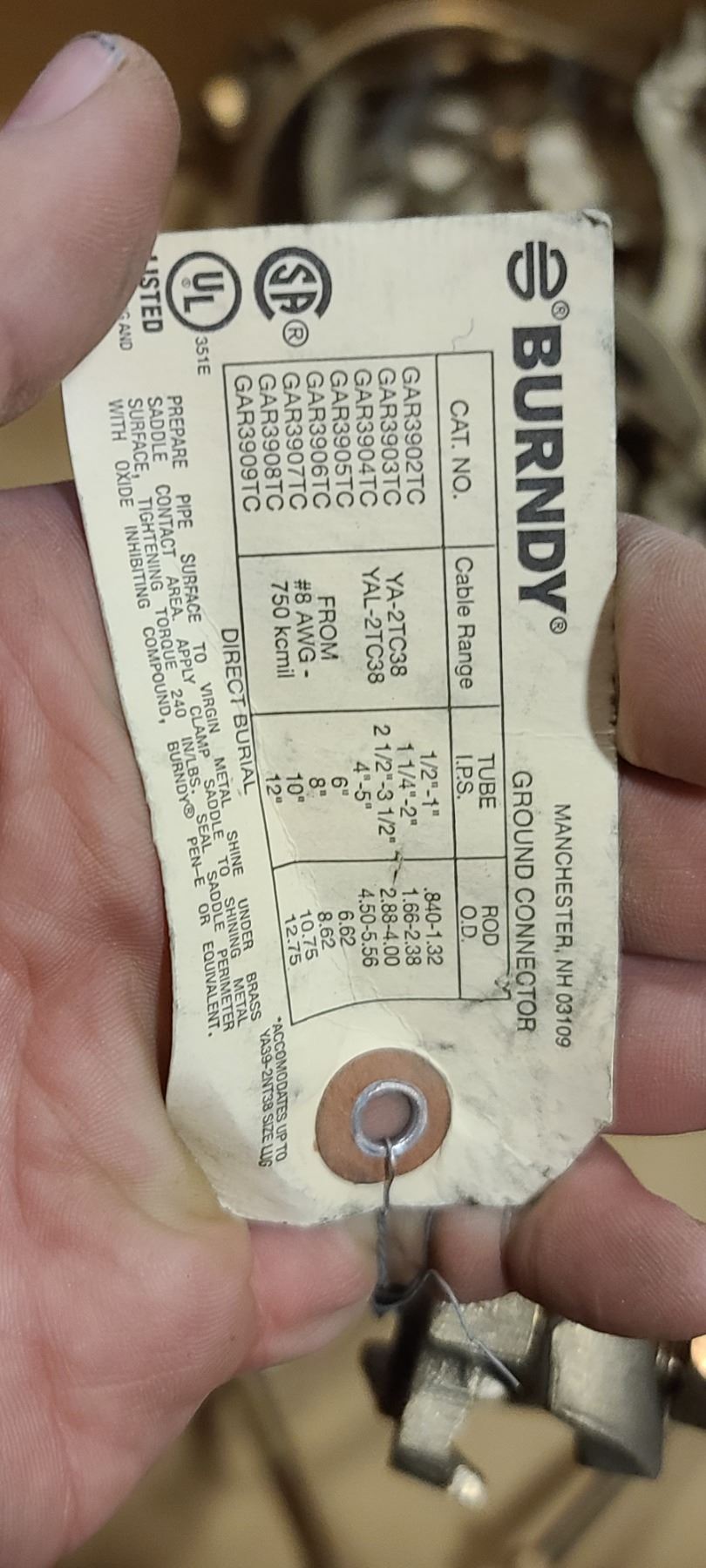 BUNDY PIPE GROUNDING CLAMPS  4-4/0 11/4 -11/2 -2  QTY X 12