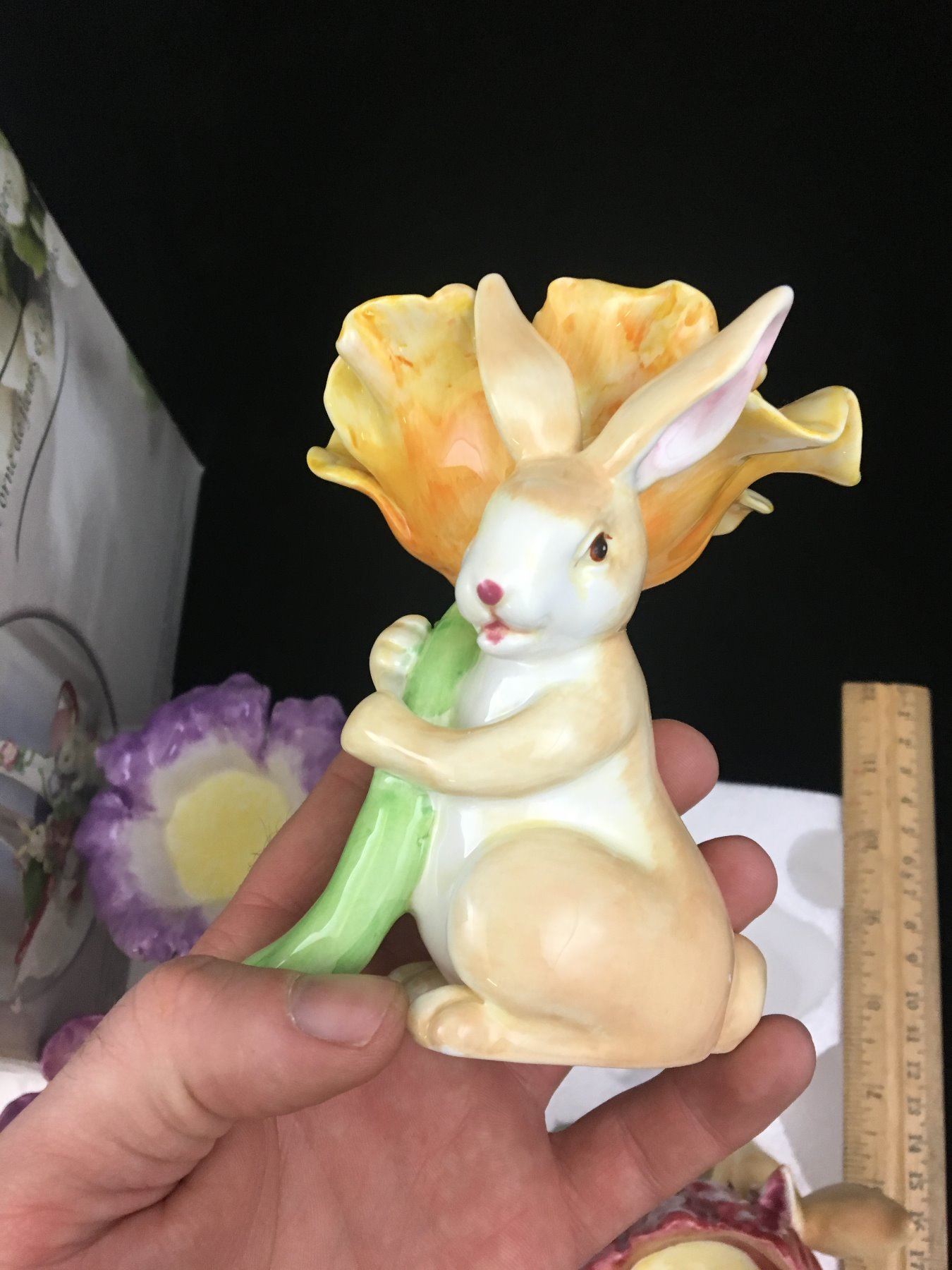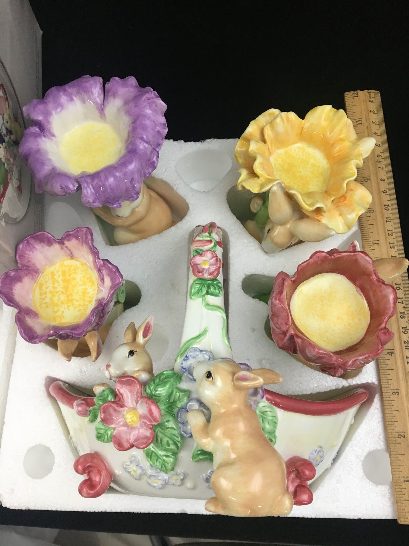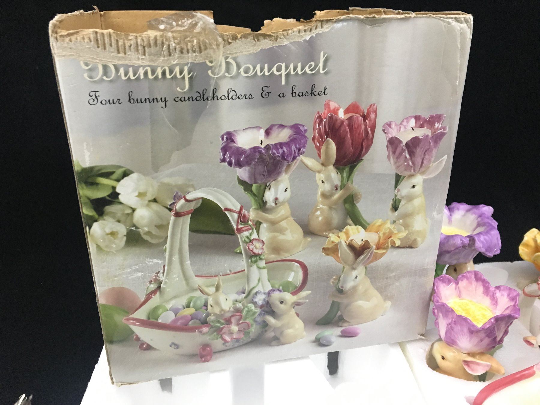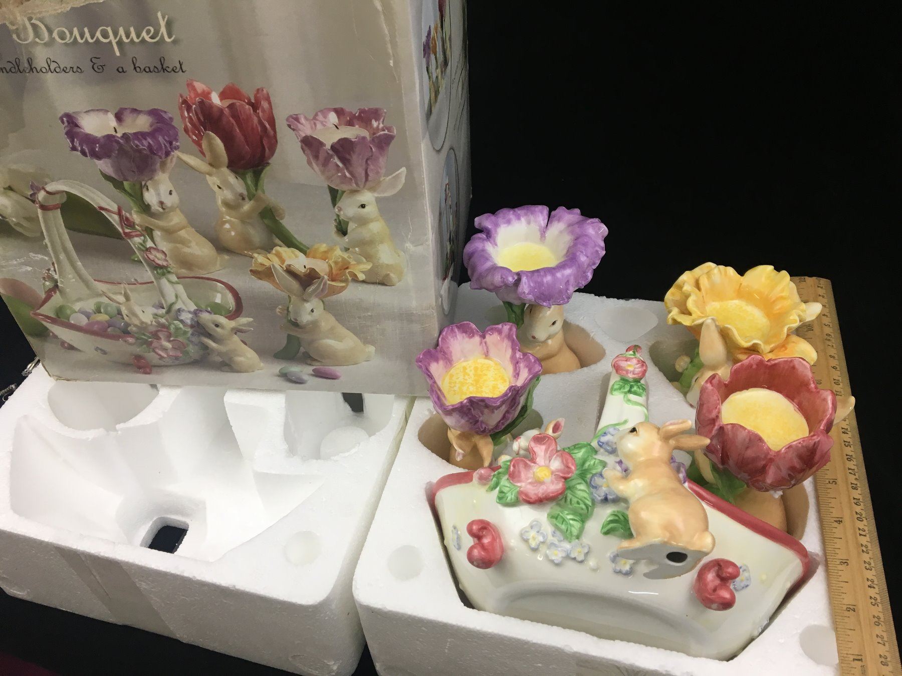 BUNNY BOUQUET CANDLE HOLDERS AND BASKET SET (WITH BOX)