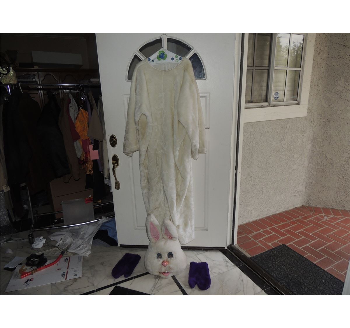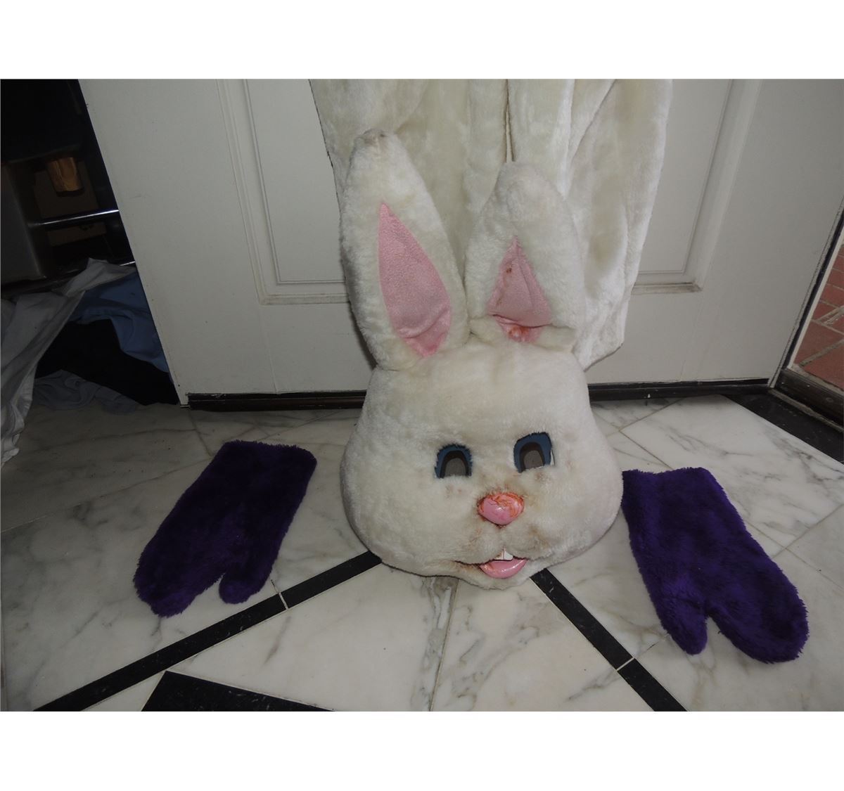 BUNNY EASTER COMPLETE MASCOT COSTUME WITH MASK AND GLOVES.