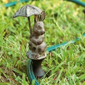BUNNY HOLDING UMBRELLA HOSE GUARD - 17"H 3.5"W 3.5"D - ALUMINUM & IRON