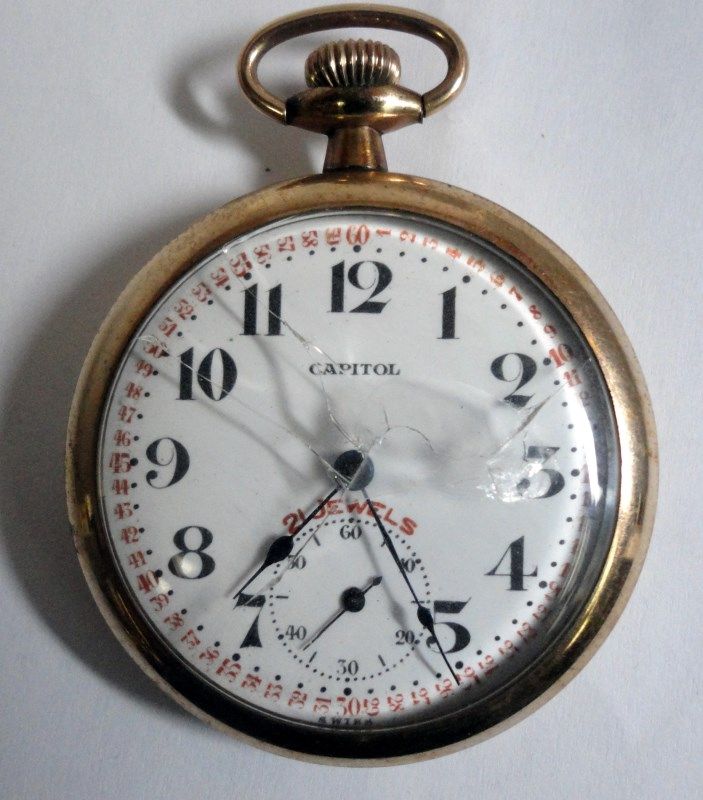EST $90- $110, SWISS MADE, 21 JEWELS, 12 SIZE, SERIAL #2337349, CRYSTAL BROKEN, RUNS, NEEDS CLEANED