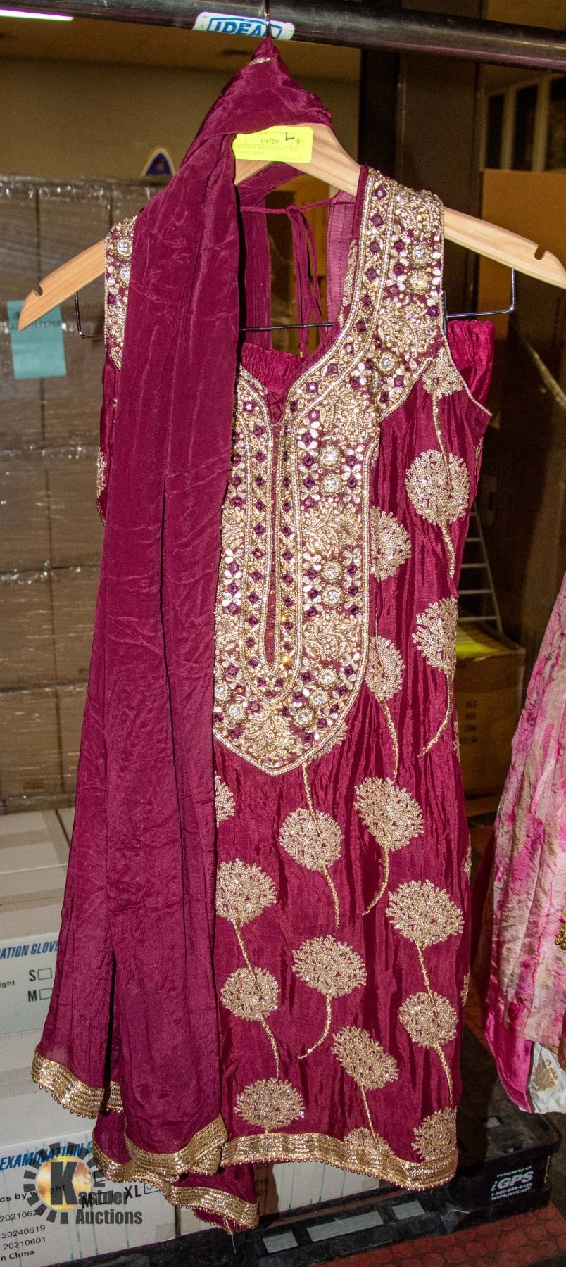 KAMEEZ PANT DRESS SUIT WITH MATCHING SCARF - INTRICATE GOLD EMBROIDERY AND BEAD WORK - LADIES SIZE LARGE **ALL ITEMS MUST BE REMOVED BY 5PM SATURDAY, DECEMBER 7TH 2024. ALL REMAINING ITEMS WILL BE SUBJECT TO A $6.00 PER DAY STORAGE CHARGE. ANY ITEMS REMAINING AFTER MONDAY, DECEMBER 23RD 2024 WILL BE CONSIDERED FORFEITED. NO REFUNDS WILL BE ISSUED FOR FORFEITED ITEMS. TO SCHEDULE A PICK UP APPOINTMENT CLICK HERE