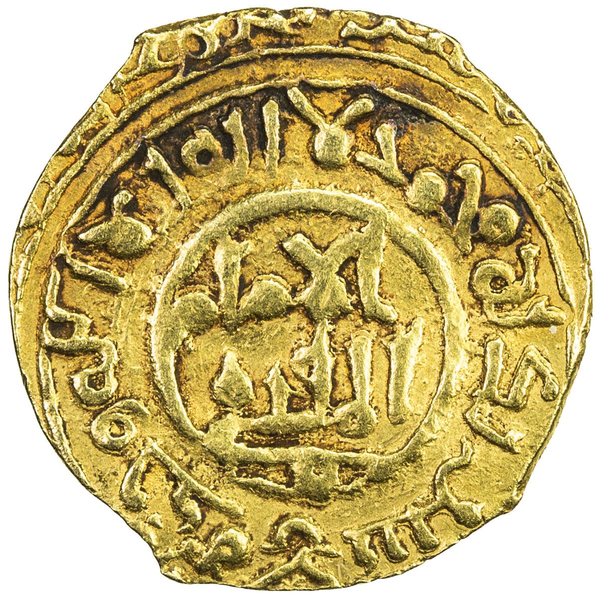 BURID: Abaq, 1140-1154, AV ¼ dinar (1.13g) (Dimashq), ND, A-N784, without the name of Abaq, citing only the Great Seljuq ruler Sanjar, EF, RR. Some extremely rare full dinars of Abaq actually cite his name, as do most, if not all of his billon dirhams. Most full dinars and all fractional dinars cite only the Great Seljuqs.