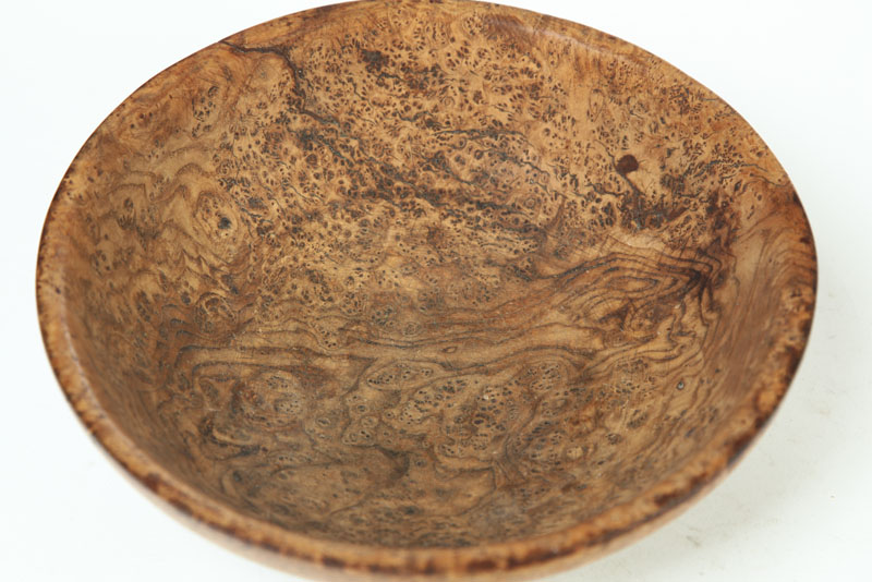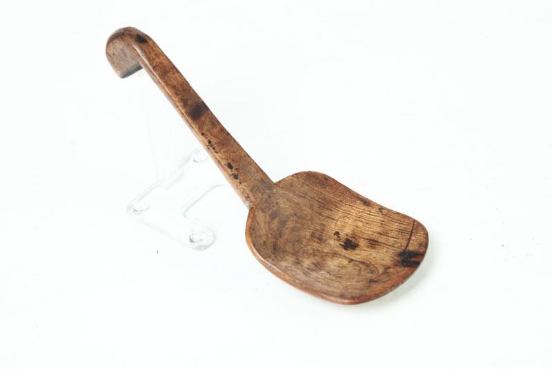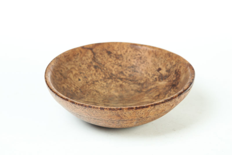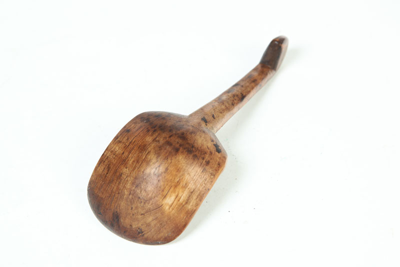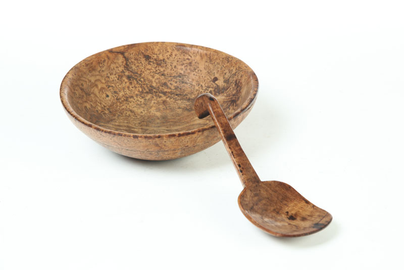 American, 19th century. Bowl with good figure and patina, 3"h. 9"d., and a small butter paddle with some figure, 8 1/2"l.