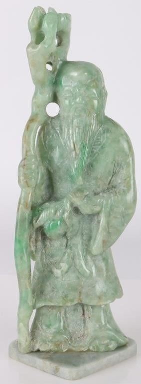 Antique Burmese Jade wise man statue, Chinese origin. Electronically tested as Jadeite.