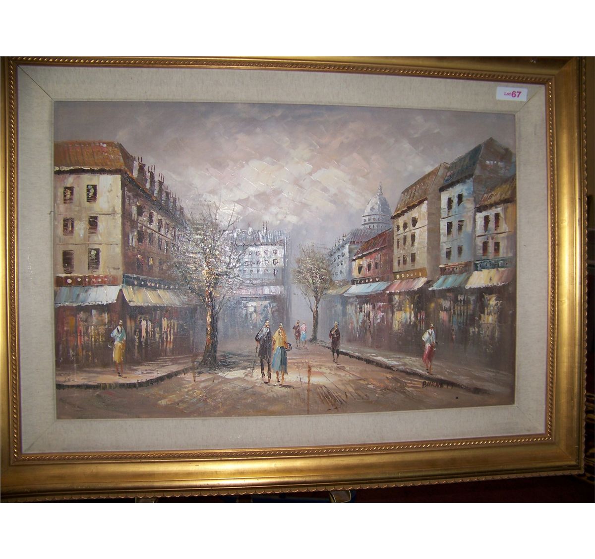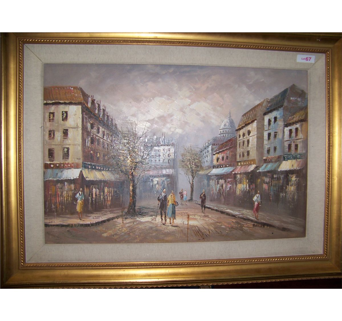 BURNETT EUROPEAN STREET SCENE. ORIGINAL OIL ON CANVAS, CUSTOM FRAMED 35T X46W