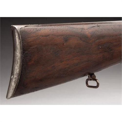 <B>VERY FINE EARLY 5TH MODEL BURNSIDE CIVIL WAR .54 CALIBER PERCUSSION BREECH LOADING CARBINE (FLAYDERMAN 9B-046). SERIAL # 5648, PROBABLY MANUFACTURED IN 1863</B></I> A very nice condition early example of this popular Civil War cavalry carbine that saw extensive use in the hands of the cavalry of the Army of the Potomac. <BR><B><BR>Condition: </B></I>Barrel with smooth dark patina and traces of original blue. Frame and hammer with 20% original case colors, the balance a smooth gray. Breech block, and tang retain about 80% of the original bright blue/case colors. Lever with traces of color the balance a smooth gray patina. Band and buttplate also smooth with traces of blue. Wood very nice with vestiges of both cartouches, just a few minor nicks and one small filled area on left side of forestock just forward of frame, also minor. <BR><BR><b>Shipping:</b> Requires 3rd Party Shipping (<a target="_blank" href="http://www.heritageauctions.com/common/shipping.php">view shipping information</a>)