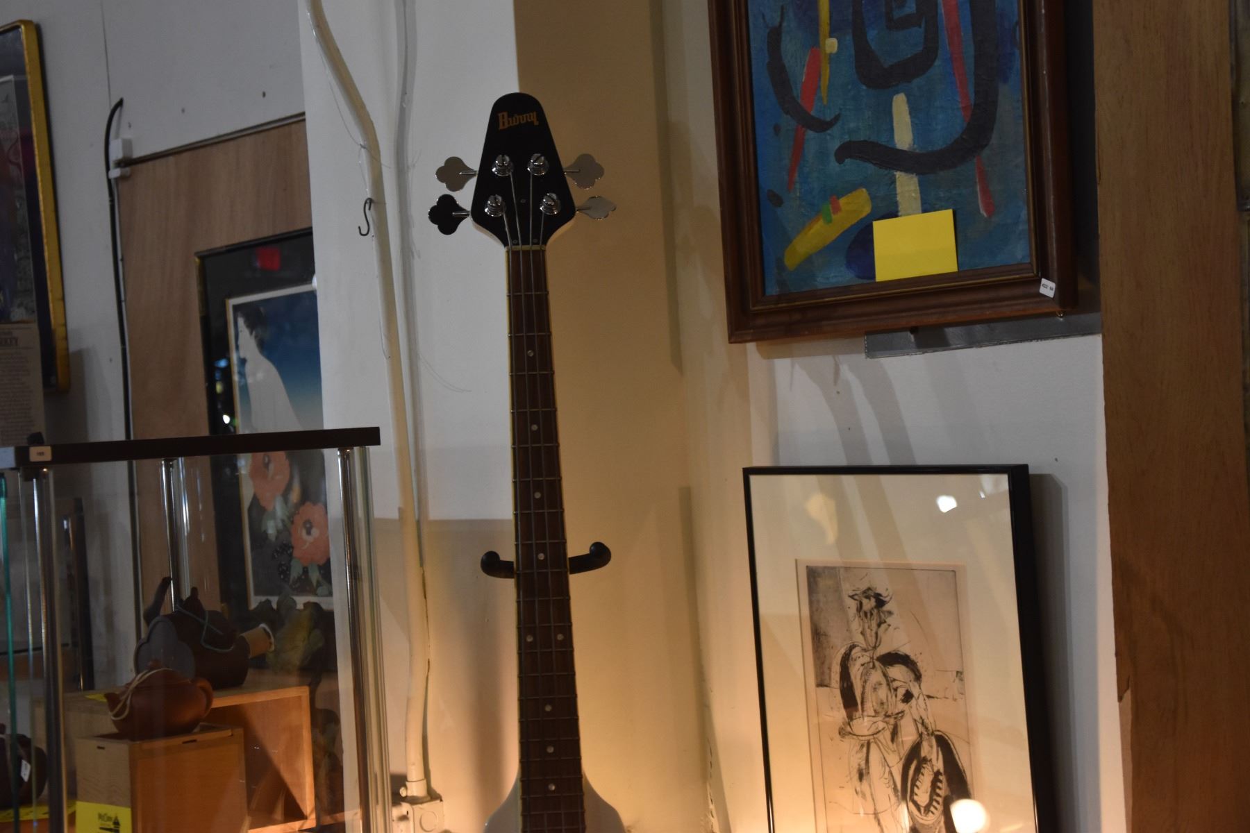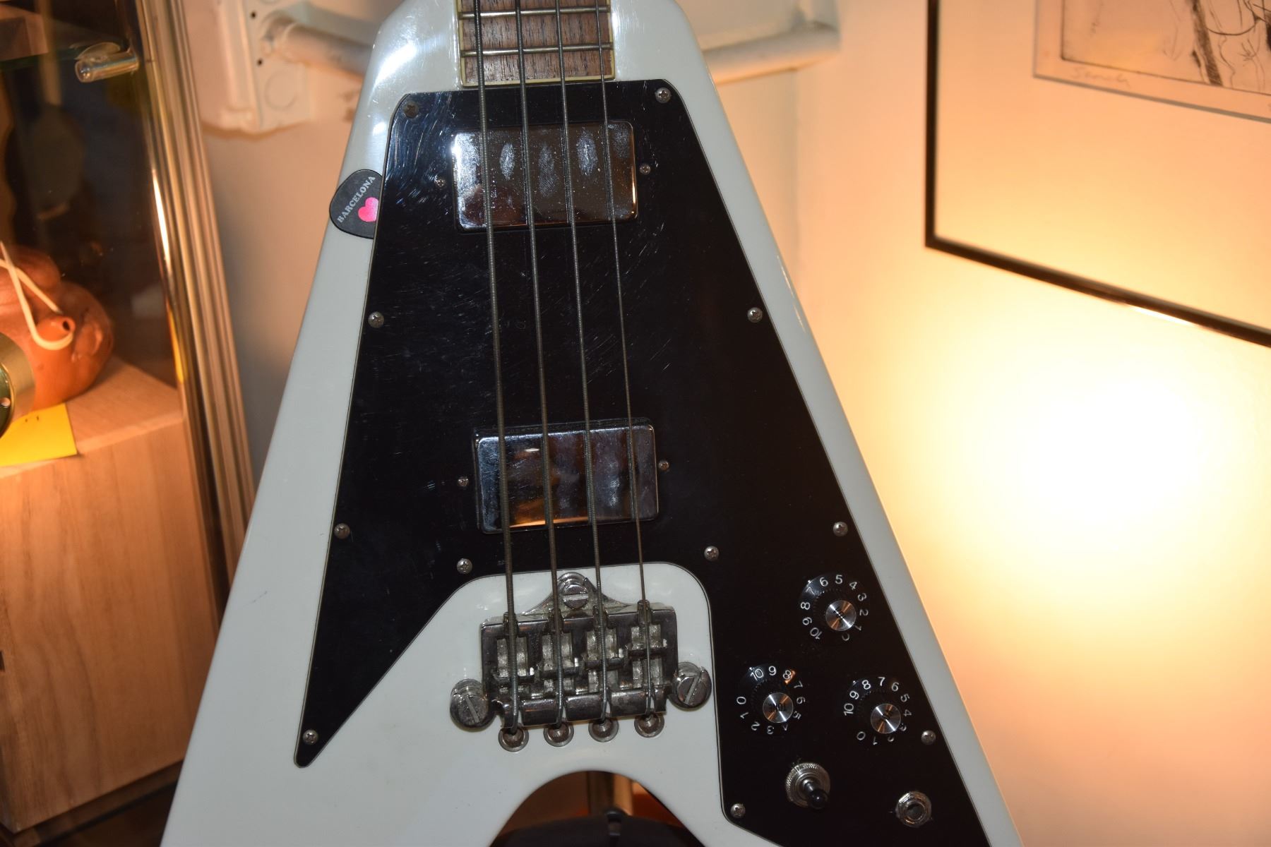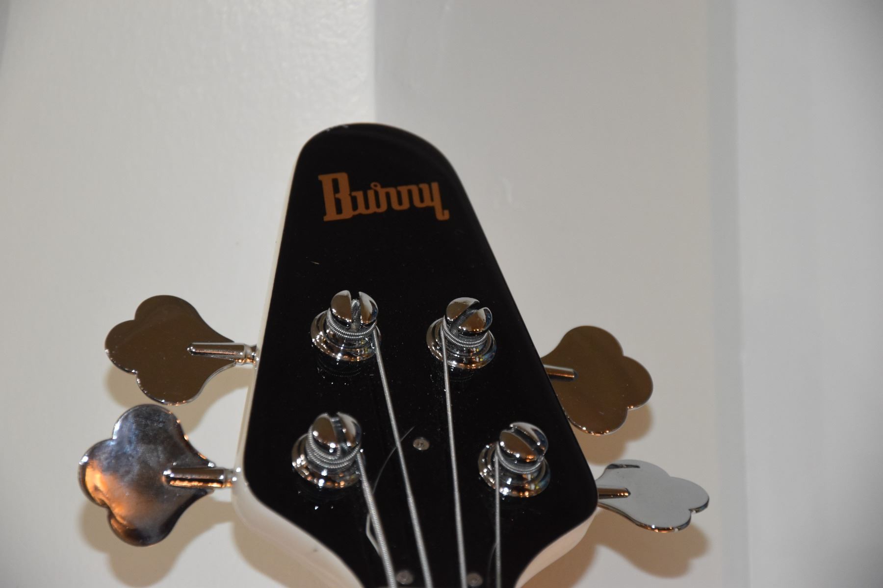 BURNY FLYING V BASS GUITAR W/STRAP & SOFT CASE