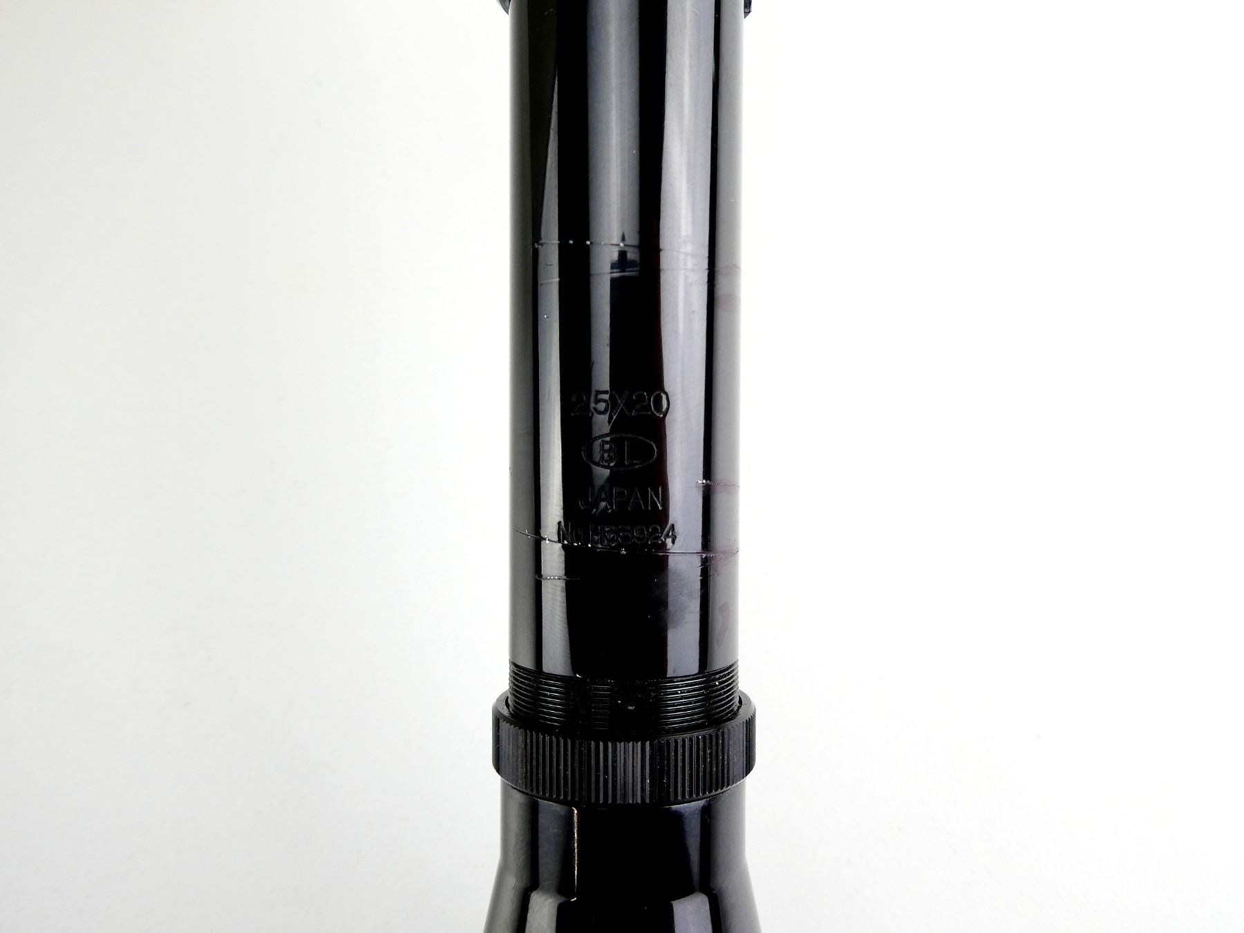 (1) CLEAR OPTICS, DUPLEX CROSSHAIR RETICLE, 1" TUBE DIAMETER, WORKING MAGNIFICATION RING, WINDAGE & ELEVATION KNOBS TURN, MARKED: "BUSHNELL 2.5X20, NO. H33924", ETC., SHOWS WEAR & TEAR / USE MARKS. SEE PHOTOS.