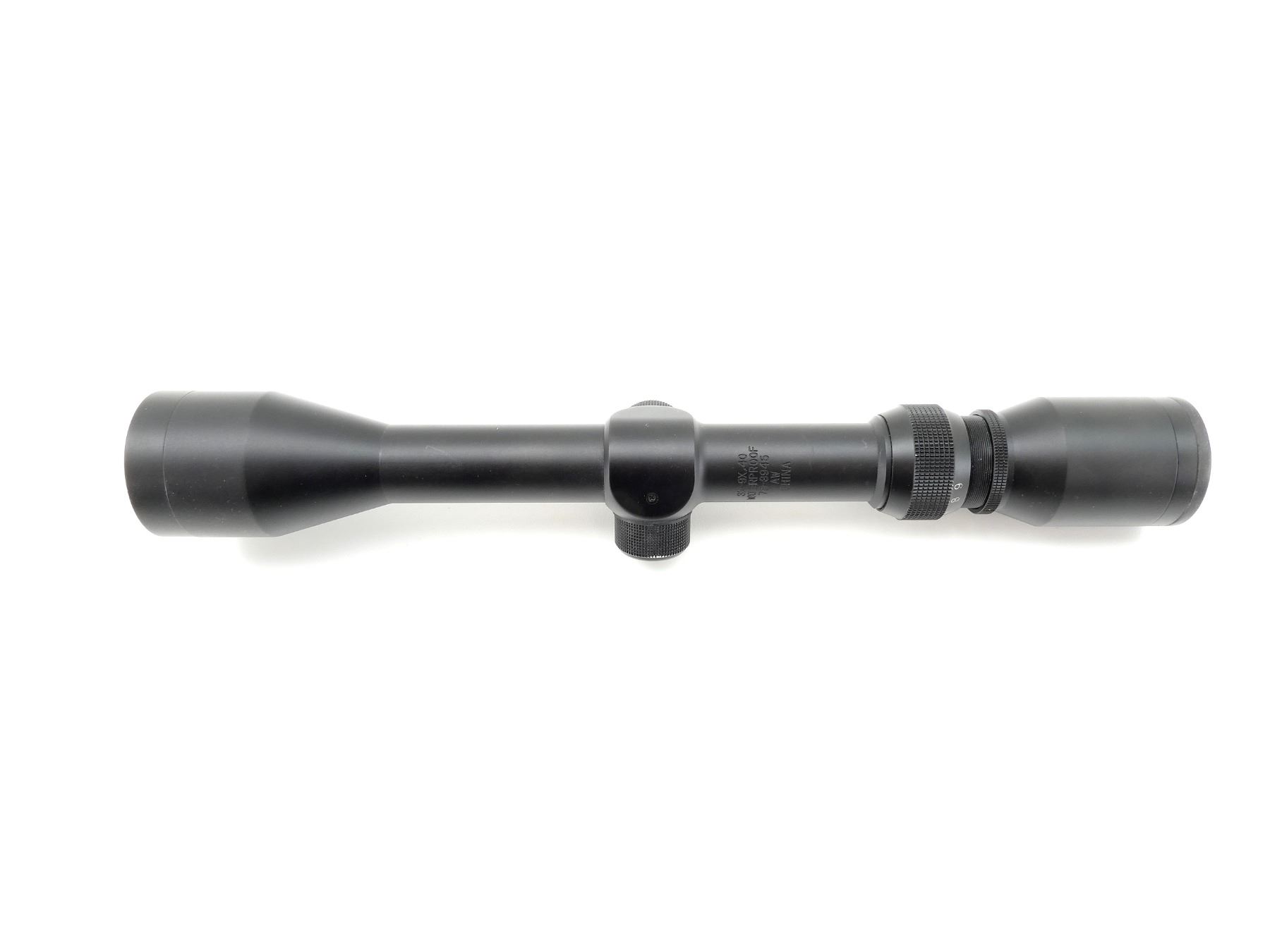 (1) CLEAR OPTICS, DUPLEX RETICLE, 1" TUBE DIAMETER, WORKING MAGNIFICATION RING, WINDAGE KNOB TUNS, ELEVATION KNOB SEIZED, MARKED "3X-9X, 40", ETC., SHOWS WEAR & TEAR / USE MARKS. MAY REQUIRE FITTING. SEE PHOTOS.