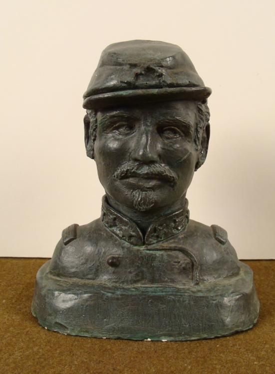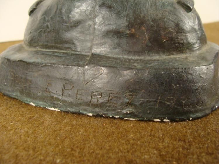 HERE IS A BUST OF CIVIL WAR SOLDIER-”WEIGHT OFCOMMAND”; BY SCULPTRESS EVELYN PEREZ.; THIS IS A GREATRENDITION OF AN ORIGINAL CIVIL WAR SOLDIER IN UNIFORM AND KEPI.; ONTHE BACK IT IS MARKED “SCULP E PEREZ” AND IS 7” TALL.