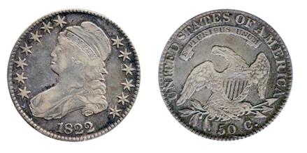 BUST HALF DOLLAR. 1822. ICCS Very Fine-30.