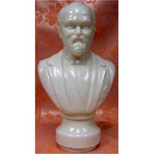 THIS IS A WONDERFUL MILK GLASS BUST OF POINCARE MAUCOURT-LILLE. I AM SURE THIS IS AN ADVERTISING PIECE. I WOULD GUESS FROM A DRUG STORE OR A CANDY CONTAINER. THE BUST IS A MAN WITH A MUSTACHE AND BEARD AND HE IS DRESSED IN A SUIT. THIS IS A VERY WONDERFUL PIECE AND WOULD LOOK NICE WITH YOUR COLLECTION OF BUSTS. CHECK THIS OUT AND EMAIL US IF YOU HAVE ANY QUESTIONS.
